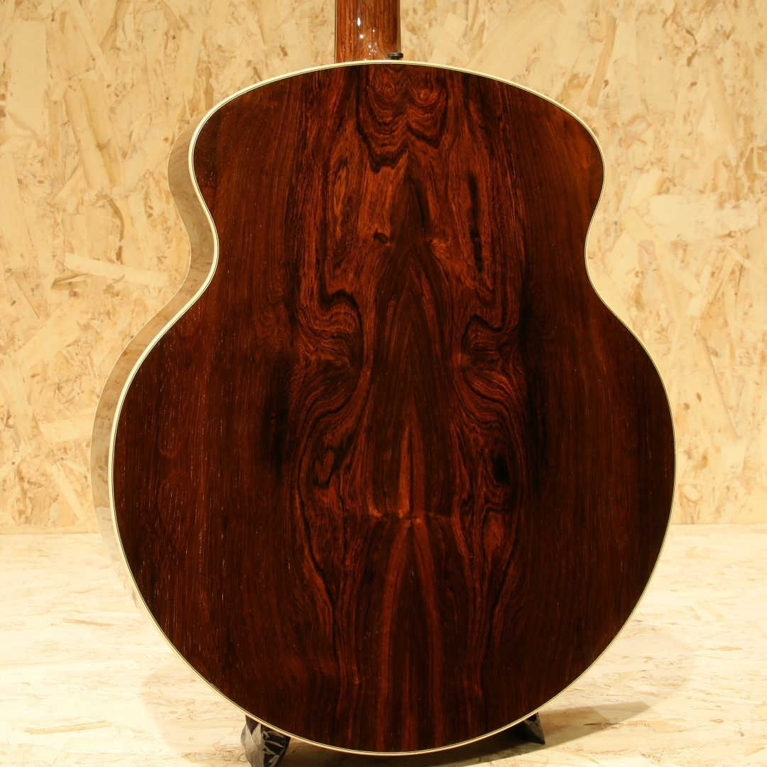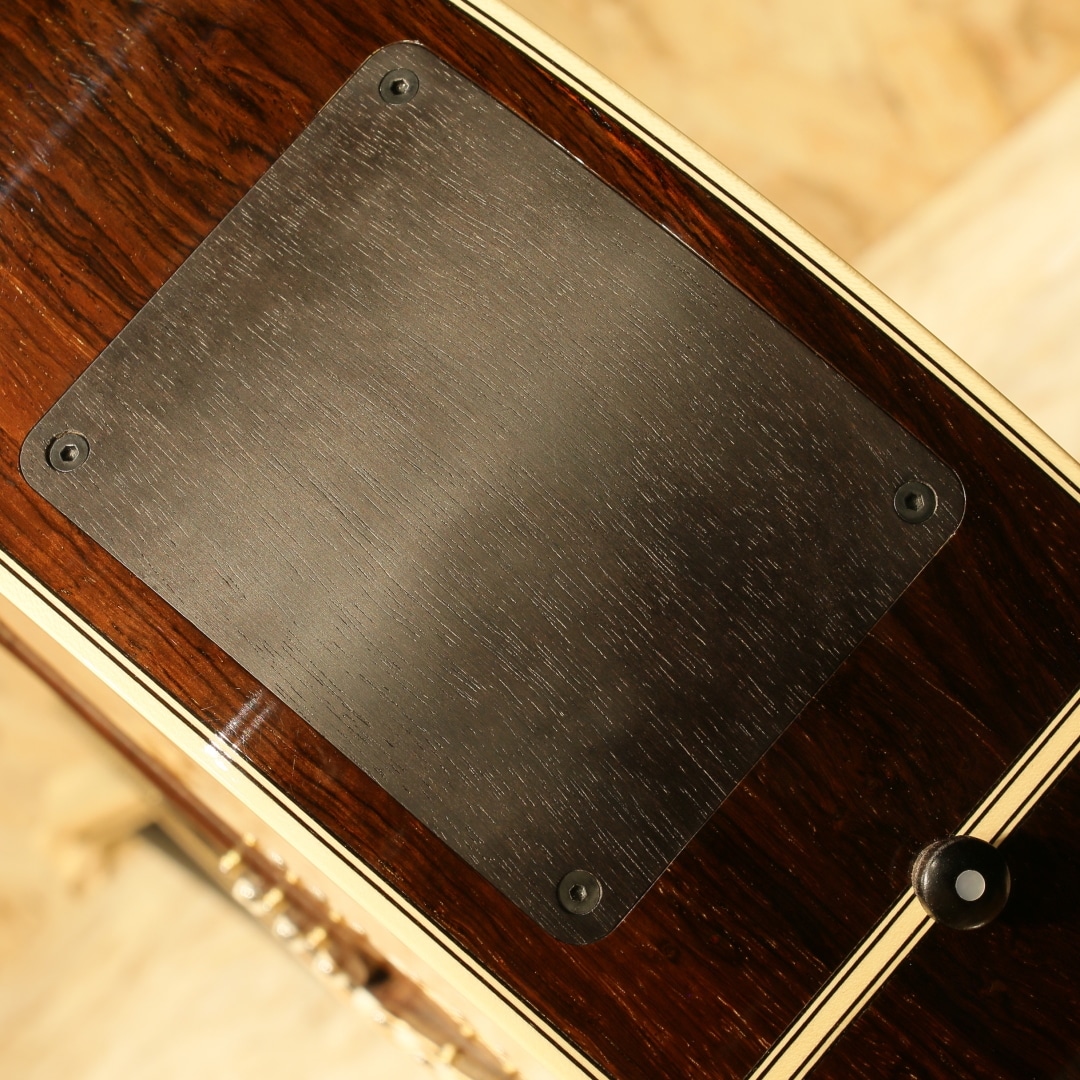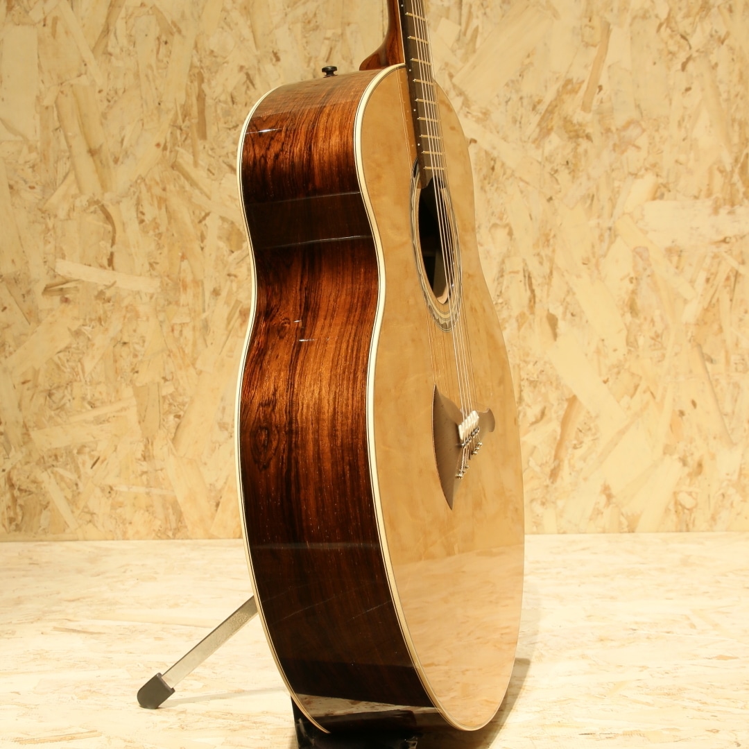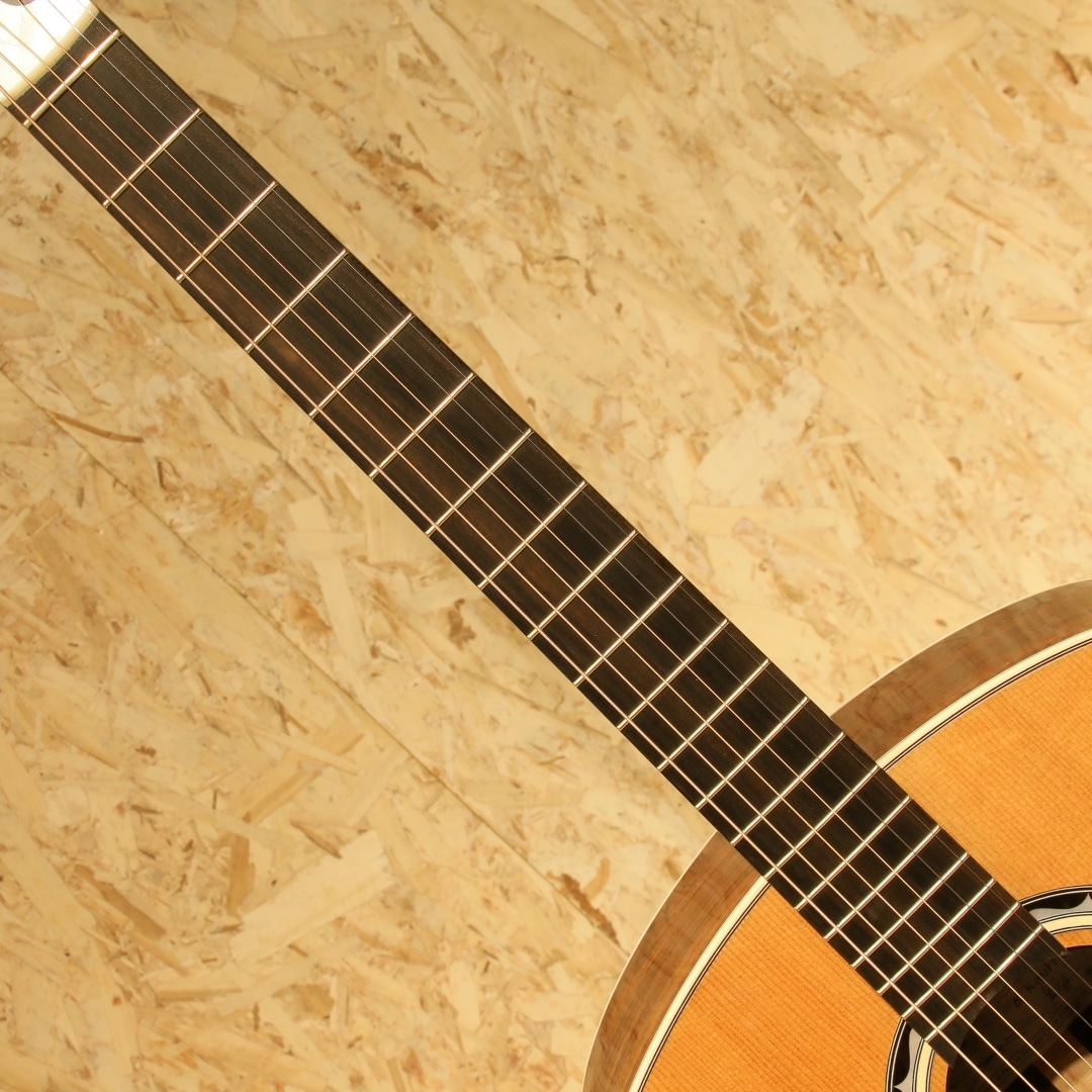 Steve Klein。50年もの間、ギター業界のトップを走り続ける一人の偉大なルシアーでもあり設計者です。独創的なデザインの一つ一つは人間工学的理論に基づき設計され、発明家的思考でストレスなどが解消されています。しかしそれは彼のアイディアのみで生み出したものではなく、長年築き上げた一流のアーティストとのコミュニケーションなどから得たトライ&エラーから構築されたもので、その一つ一つは実から得たものです。その一つ一つが革新的で先を行く彼のデザインや構造理念がギター業界に与えた影響は計り知れません。現在、KleinギターはSteve Klein氏とその設計を完全に具現化できる熟練ビルダーのSteven Kauffman氏のパートナーシップで製作されています。カフマン氏の技術の高さはクライン氏がパートナーシップとして選んだというだけでも言うまでもないでしょう。天才的な技術の高さでクライン氏の頭脳を具現化しています。本器は2017年の作品USEDです。"457"という約18インチのボトム幅を持つジャンボサイズのモデル。もっともクラインギターらしいサウンドが堪能できる一本です。白肌のシトカスプルーストップ、この上ない質感のCSA RWサイド&バックが採用されています。ローズウッドネック、エボニー指板、CSA RWブリッジ、セパレートサドル、ゴトー510ペグ、ウッド&パールロゼッタ、クリアピックガード、ホリーウッド・バインディング、0フレット仕様。トップ構造はエックスブレイシングと双璧をなすカーシャブレイシングとなります。蜘蛛の巣状に貼り巡らせたクラインギター唯一のスタイルです。Steve Klein氏とSteven Kauffman氏は二人とも伝説的な人達です。カフマン氏はビルダーの間でも有名な腕前の持ち主で、奇想天外なクライン氏の設計を天才的な技術で実現しています。正直、全く免疫のない角度から言葉を失うレベルの凄いサウンドで、音出し一発目で月並みのギターではないことを誰もが理解できるはずです。腹とネックを持っている左手に走る楽器の揺れが尋常ではなく、圧巻のボリュームを身上としています。クリアな中高音はもちろん、バズーカ級の低音の響きが持ち味です。爪が弦に当たる生々しい音まで再生されます。とにかくアクセル全開。こんなブースト感満載のサウンドをほかに知りません。実際に早く確かめていただきたいです。氏のギターは使う木材、デザイン、音色。すべてが個性的ですが、ただの奇抜なギターとはワケが違い、そのすべてが綺麗に混ざり、高い水準で完成されています。経年のラッカー引けによる木の導管のくぼみやヘッドとネックの木継ぎ目に小さく極わずか表面的な塗装の曇りが見られる程度の極上品。ネックのコンディションもストレートで大変良く、プレイアビリティーも極上。商品状態はほぼパーフェクトに近いコンディションをキープしています。新品中古問わず見かけることは稀で、日本においてもなかなか流通することがありません。世界には次元を超えた天才が存在するのだと改めて気づかせてくれる、至高の一品です。オリジナルホワイトカラーカールトンケース付属。