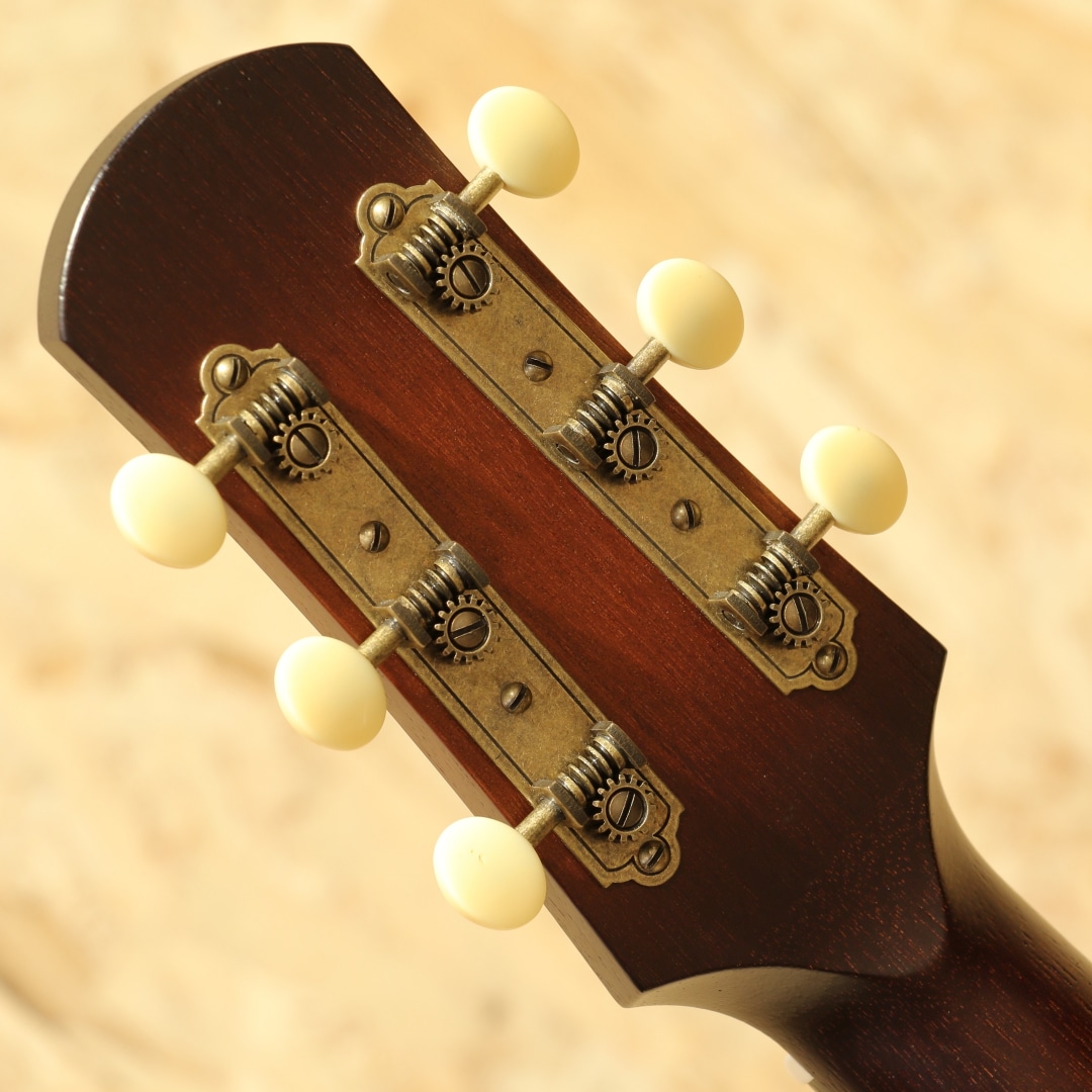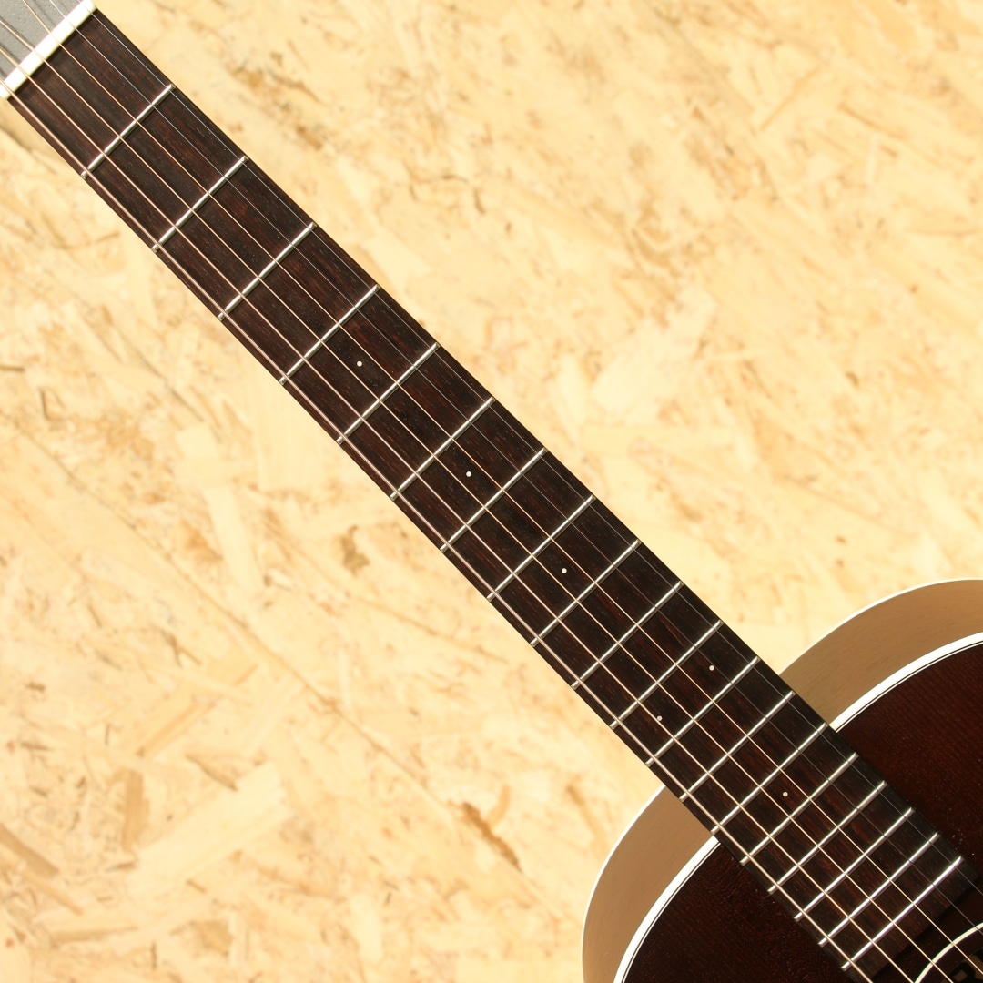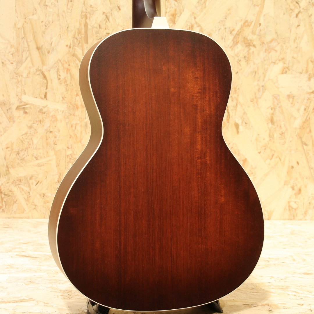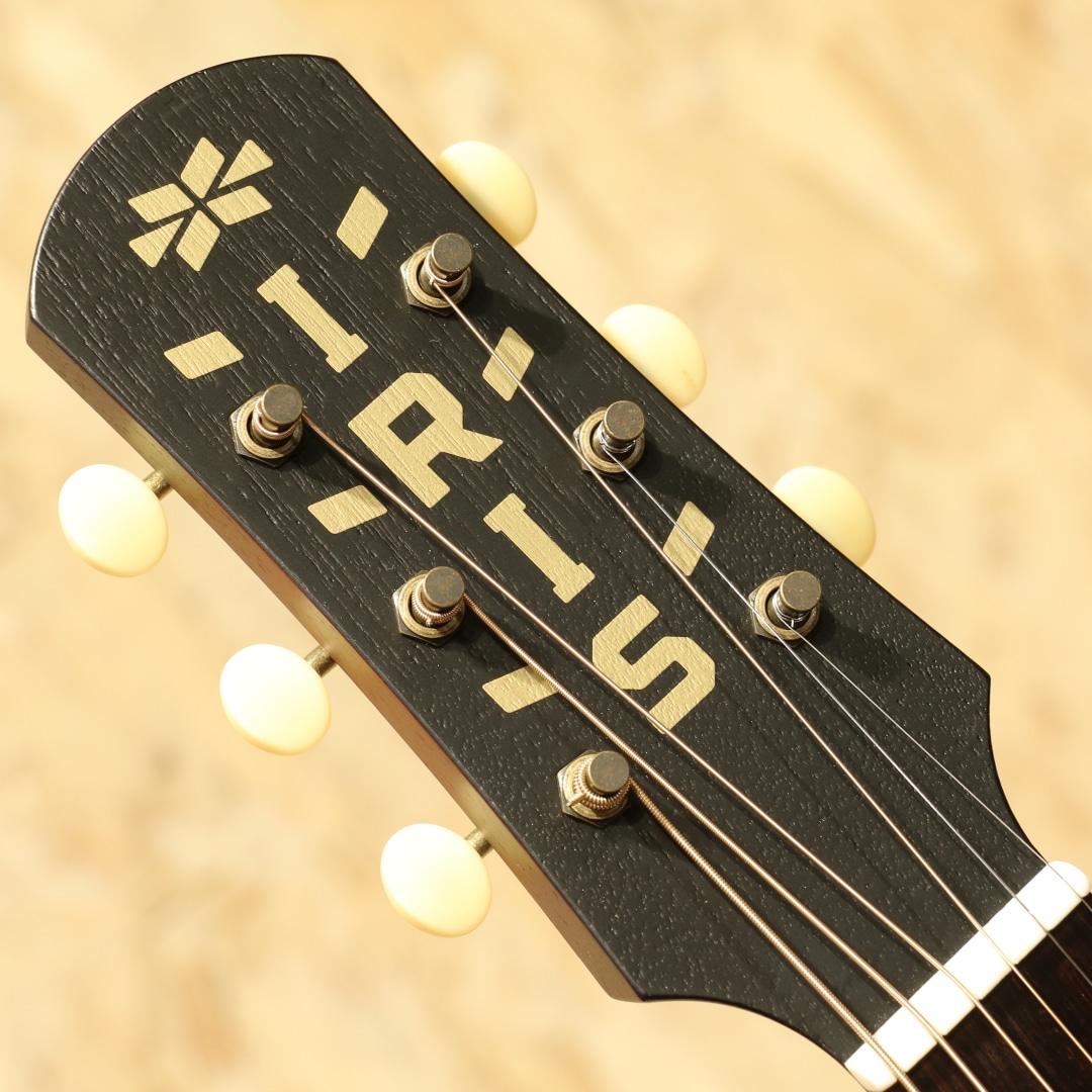バーモント州バーリントンにて2018年に設立された”IRIS GUITAR COMPANY(アイリス・ギター・カンパニー)”。ヴィンテージにインスパイアされたトーンと美学を捉えたモダンな楽器の製作をする高い技術と経験を持つ少数精鋭のルシアー達によるチーム。Froggy Bottom出身で現サークルストリングスの設立者Adam BuchwaldとFairbanks GuitarsのDale Fairbanksが共同設立し、スタッフには元コリングス、サンタクルーズ、Pava、Ellis、など名だたるアメリカンブランドで活躍したエキスパートなスタッフが揃う要注目のブランドです。Made in U.S.Aのハイクオリティーを実現しながら入手しやすい価格でプレーヤーに使えるギターを提供する事を考えられています。本器はヴィンテージ・ギブソン・ギターのエキスパートとして知られるフォークウェイ・ミュージックのマーク・スタットマンの強い要望により開発され、名前の由来となった00スタイル、いわゆるスモールボディサイズのモデル。"MS-00 Model Tobacco Burst"。2020年代製USED品です。シトカスプルーストップ、マホガニーサイド&バック、マホガニーネック、ローズウッド指板、ローズウッドストレートブリッジ、ファイアーストライプピックガード、Golden Age レリックブラスペグ、ブレーシングはアディロンダックスプルースを採用したスキャロップドXブレイシング、ボルトオンネックジョイント、木の導管が浮かぶ極薄のオープンポアサテンニトロセルロースラッカーフィニッシュにて仕上げれらています。テーパードヘッドやピックガードデザインなど随所に拘りを感じるディティール、どこか懐かしいようなレトロな雰囲気を醸し出しています。ナット幅42.9mm、628mmスケール。スモールボディと極薄ラッカーフィニッシュからなるドライで軽快な箱鳴り。サイズを生かした早い立ち上がりのサウンドはバッキングとして刻むタイトなストロークから小気味よいリズミカルなスタイルまで幅広いジャンルに対応してくれるでしょう。シトカ×マホガニーの本器は、コシのある力強さと暖かみのあるふくよかさが特徴。程よく握りがいのあるネックシェイプ、サテン仕上げにより違和感はなくポジションチェンジもスムーズです。ロゼッタの1弦側中央部に継ぎ目が収縮により少し広がっておりますが木部は割れてはおらず問題なくご使用頂けます。その他にはピックガードにピッキングスクラッチが入っている程度と非常に綺麗なコンディションが保たれている本器。ハイクオリティのスモールモデル。古き良きオーセンティックなアメリカンギターの存在感を持ちながらも現代的で確かな技術で造られるアイリスギター。現在アメリカでも話題のブランドです。オリジナルハードケースが付属します。