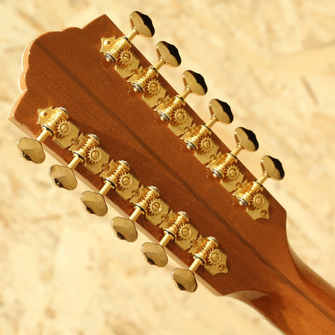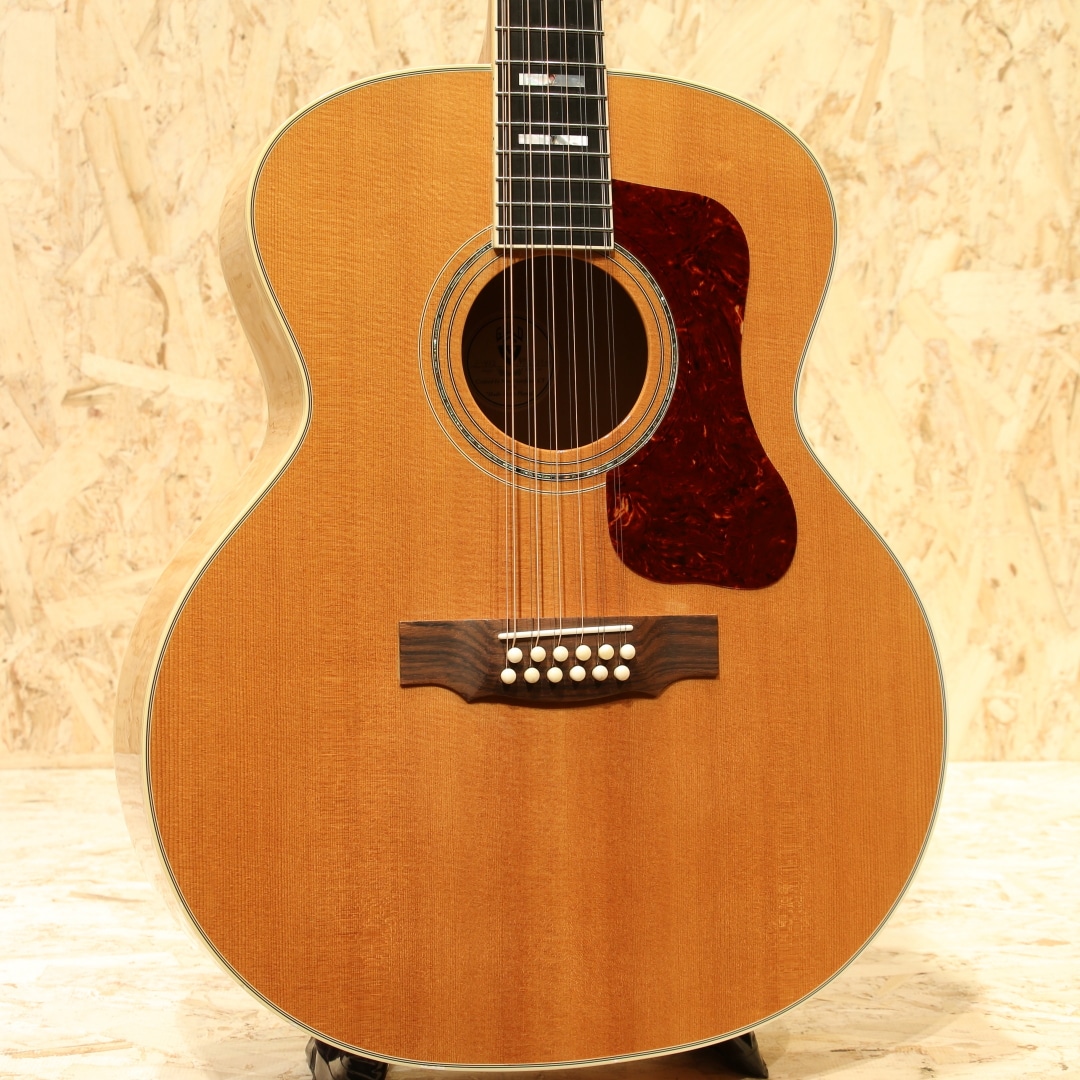 Paul SimonやJohn Denver、国内では井上陽水氏、南こうせつ氏、松山千春氏など数多のフォークシンガー達が愛した"Guild (ギルド)"。古くはアメリカンブランドを象徴するブランドでMARTIN、GIBSONと並び御三家ブランドとして名を馳せていました。本器はMTVアンプラグドにてスティーヴィー・レイ・ヴォーンが出演した際に使用したモデルの近年代仕様”F-412”。2011年製USED品です。スプルーストップ、メイプルサイド&バックでバック面はアーチ加工が施されております。メイプルネック、エボニー指板&ブリッジ、オリジナルグローバーミニロトマチックゴールドペグ、パール&アバロンVブロック指板インレイ、オリジナルピックガード、ラッカーフィニッシュ。かつて「12弦と言えばギルド」と言われたほど、特に12弦が高い評価を得ており、内外のギタリストに愛用されています。1990年代にクラプトンや多くのアーティストが出演し再びアコースティックブームを引き起こすきっかけとなったMTVアンプラグドにてスティーヴィー・レイ・ヴォーンが製造工場と細部の仕様は若干違うもののこの12弦と同品番にて出演。ブルースをかき鳴らすレイボーンにノックアウトされた方は多数いらっしゃるのではないでしょうか。ジャンボボディーならではの奥深いリバーブ感を持ち12弦特有の広がりのある響きはまさに想像どおりのビッグサウンド。この頃のギルドに期待したいゴリゴリの無骨な感触はもちろん、繊細な表情も万遍なく合わせ持っている点は流石高級モデル。重厚さがあり、エッジが効きながらも甘いプレーン弦の響きは格別です。メイプル特有の煌びやかさと12弦が上手くマッチングし、明瞭且つダイナミックなサウンド。弦と弦がボディを通じて相互干渉するが故の馴染み合った音色。エフェクターのコーラスのように別の音がぶつかり合っているような感じも少なく、この響きは12弦ギターでしか出し得ず、イーグルスのホテルカリフォルニアのイントロなどでこのような12弦サウンドを体感することが出来ます。あのサウンドを出すならばやはり12弦でしか成し得ないでしょう。トップ面バインディングの下部中心に塗装のチップが1か所とボディエンドにゴマ粒ほどの極々小粒の当てキズ、ヘッド1弦側サイド部に細やかな擦れキズと当てキズがあるものの外観を損なうものでは無くその他には拭きキズがある程度と非常に綺麗なコンディションが保たれている本器。ネック・プレイコンディション共に良好で弦高も低く大変弾きやすい状態です。12弦の特別な響きをご体感下さい。オリジナルハードケース付属が付属いたします。