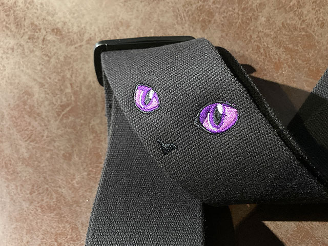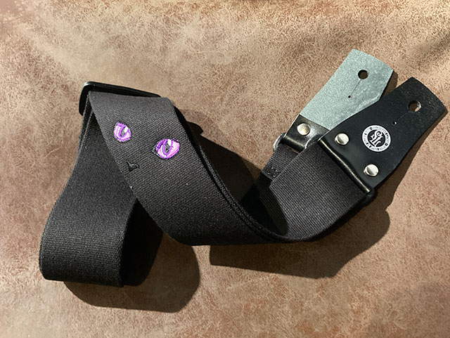 ストラップ本体の素材には柔らかくて肩への馴染みの良いアクリル製を使用し、ベルト調整のバックル部分にはギターを傷つけにくいプラスティックパーツのものを採用しております。