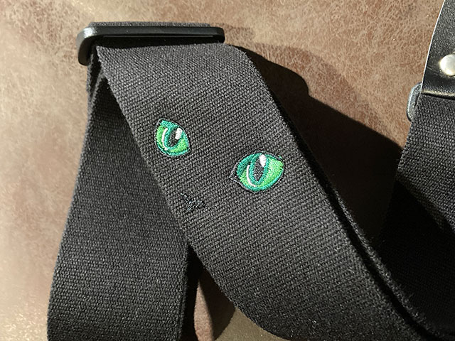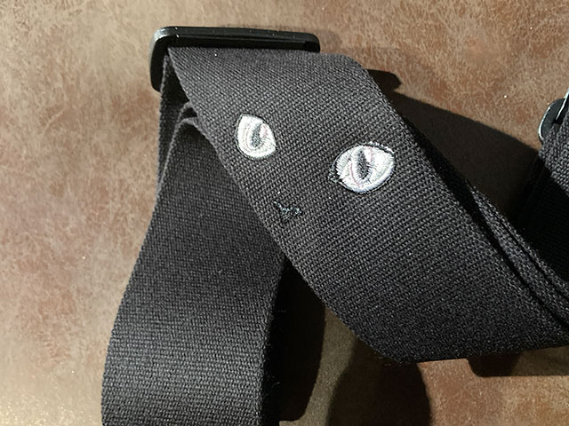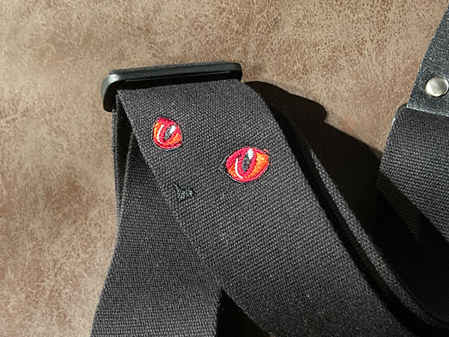 ストラップ本体の素材には柔らかくて肩への馴染みの良いアクリル製を使用し、ベルト調整のバックル部分にはギターを傷つけにくいプラスティックパーツのものを採用しております。