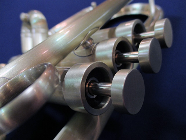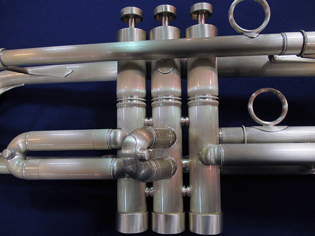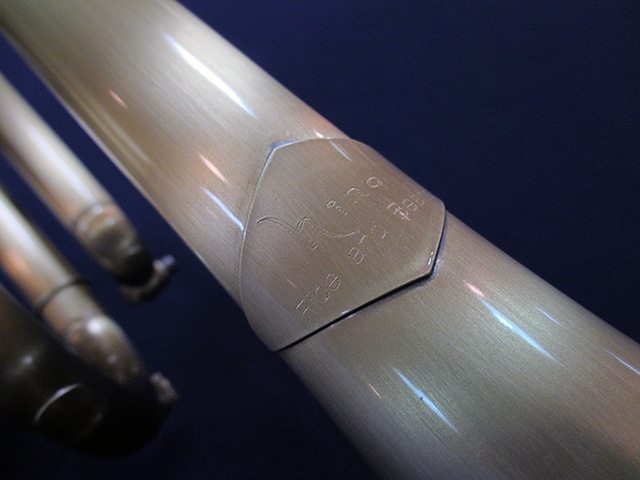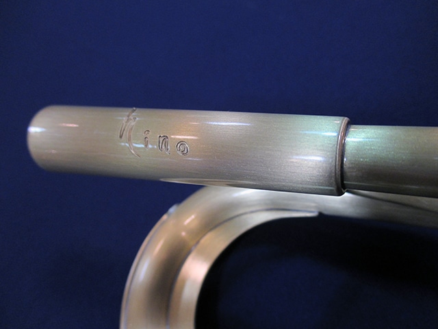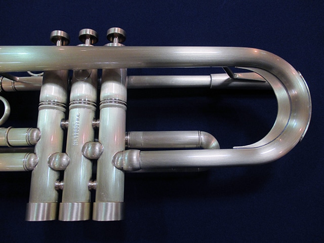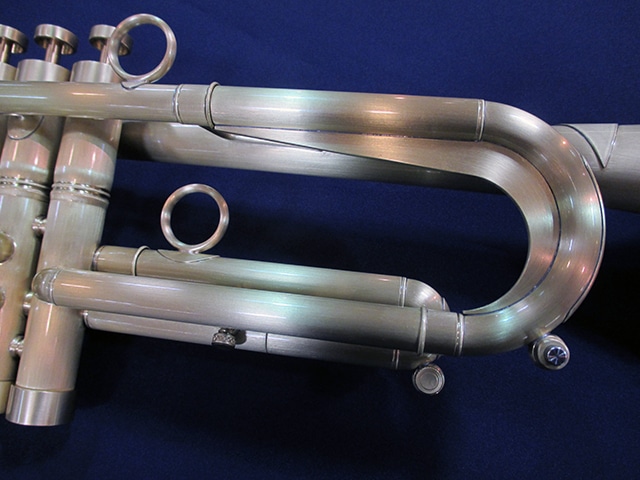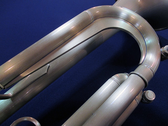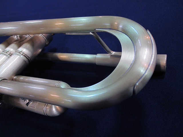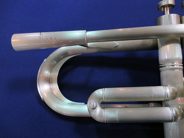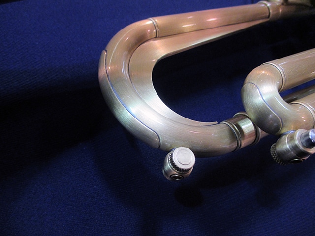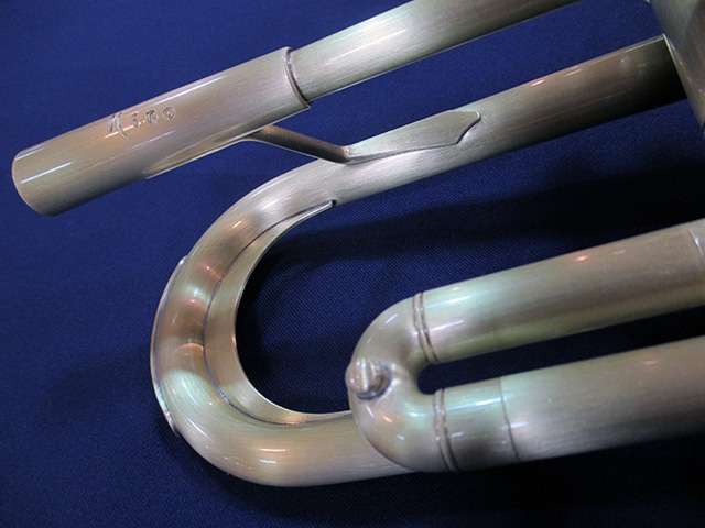 ■チューニングスライド…クルーク内側には、響きを考慮して設計された独自形状のヒレが取り付けられており、支柱同様の抵抗感を作り出している。また、外側には薄い金属板が貼られている。