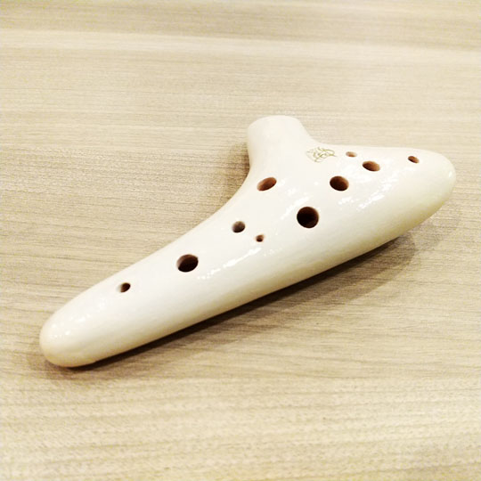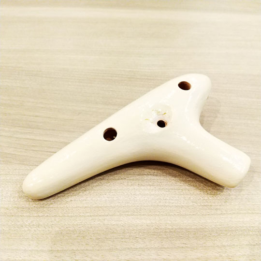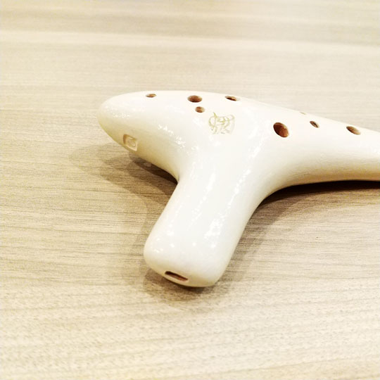 白漆は艶やかな仕上げで美しく、手になじむフォルムがひぐらしオカリナの特徴です。
