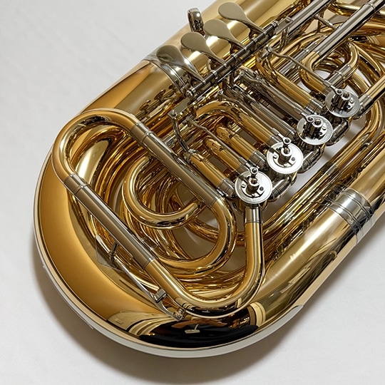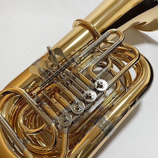 カスタムシリーズB♭管。バルブシステムは4ロータリー。ベル直径450mm、ボアサイズは20.7mm、クリアラッカー仕上げ。