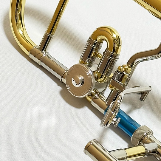 トリルキイ(D管抜差)を標準装備したカスタムシリーズアルトトロンボーン。レバーを押した時に半音下がる仕様で、リップトリルでは対応しにくい低音域等でのトリル演奏において効果を発揮し、よりソリスティックな演奏が可能になります。