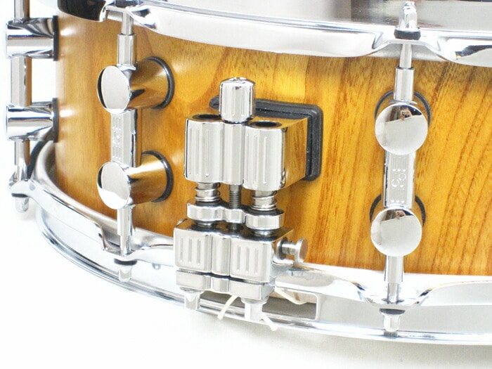 和太鼓の伝統的な刳り貫き工法と日本原産の最高の木材、そしてソナー社の技術力を掛け合わせ、特別なスネアドラムを作る。というコンセプトのもと、様々な樹種より試作を繰り返し終に辿り着いたのがこの「欅-KEYAKI WOOD-」スネアドラムでございます。