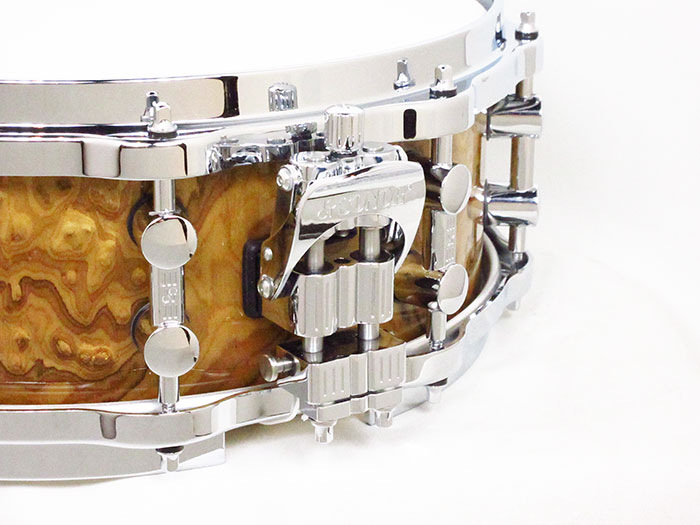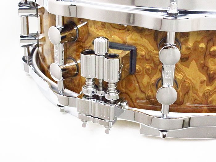シェルにメイプル6プライ+ダイナミックエッジ3プライのヴィンテージシェルを採用し、明るく豊かなサウンドはどんな音楽のスタイルにも幅広く対応します。プロライトシリーズには新たにデュアルグライドスネアストレイナーが搭載され、ストレイナースイッチ、バット部ともに下部パーツが取り外し可能となっており、スナッピーを取り外す事無くヘッドの交換が可能です。