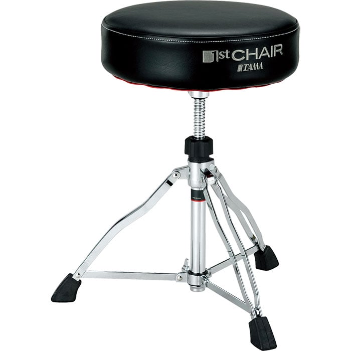 トラディショナルな丸座シートを採用したスタンダードな1st Chairドラムスローン。汎用性の高さから人気のある丸座シートの直径を14”(約360mm)高さ約120mmとやや大きめに設定。新設計のシートホルダー”シートリンク”との組み合わせにより、安定感のある座り心地を提供します。座面の素材は一般的なPVC(合成皮革)を採用しています。