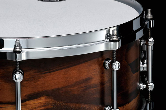 また、剛性の高いダイキャスト・フープを装備することでクリアーなアタックとパワフルなボリュームを持ちつつも、あえて8テンションの仕様とすることで、シェルの自然な鳴りを妨げないのもポイントです。6”と若干深めのサイズながら輪郭のハッキリとした耳触りの良い音抜けは、R&Bやバラード、クラシック・ロックに適したスネアドラムです。