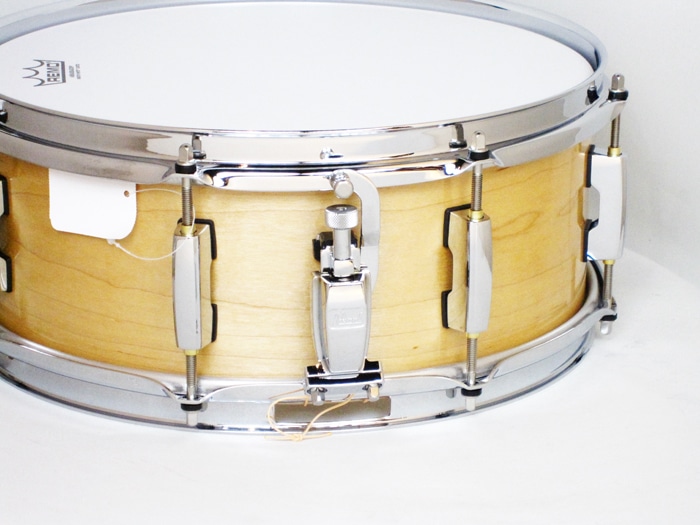 1989年の発売以来、数多くのドラマーに愛されてきた「カスタムクラシック」は、7.5mmという驚異的な厚みのワンピースメイプルを高度な成型技術で真円度の極めて高いシェルに仕上げた「名器」と称されるモデルで、センシティブかつ、スティックがくいこむような心地よいサウンドが特徴です。また黄金比に基づくエアベントのポジション設定をはじめ、クロームフィニッシュの8テンションブラスフープ、ワウンドタイプのスナッピーなどの導入により、シェルとスナッピーの響きを巧みに引き出し、センシティブなレスポンスをさらに磨き上げられています。こちらのモデルは自然環境に配慮した天然塗料を極薄塗装したネイチャーフィニッシュを採用しております。