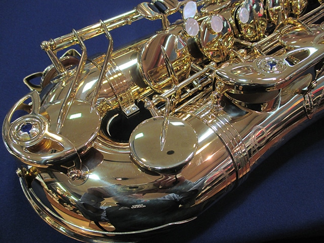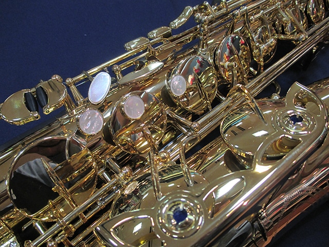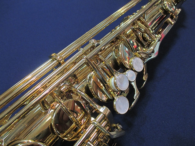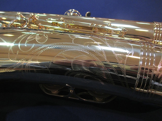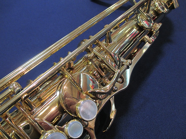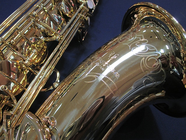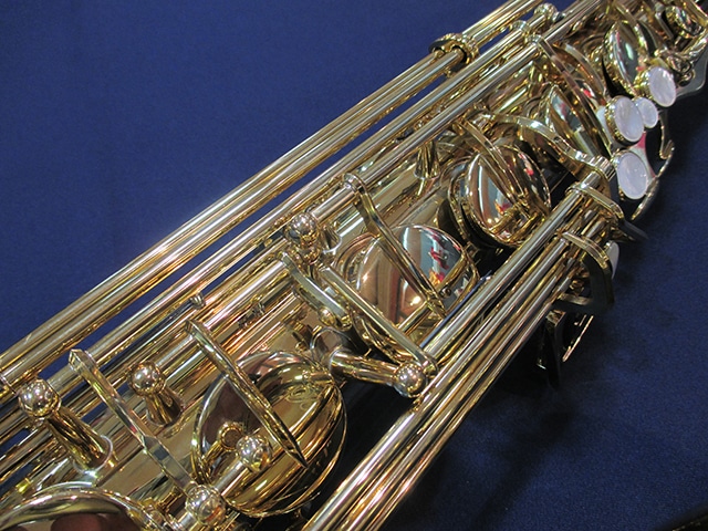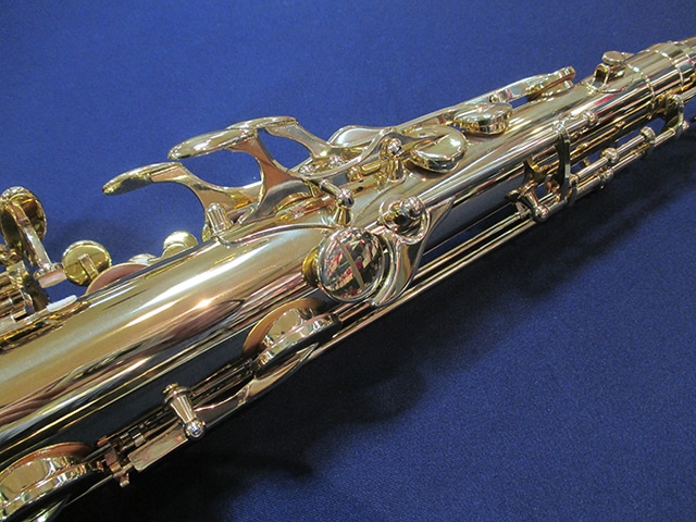 管体:イエローブラス製ラッカー仕上げ/キィ:ブラス製ラッカー仕上げ/硬質製バネ/High F#キィ付/エボナイト製マウスピース付き/彫刻入り