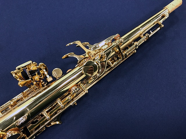 サムフック、サムレストにはヤナギサワオリジナルの『サムの魔法使い』を採用。樹脂製ではなく真鍮製金メッキ仕上げで、豊かな響きを実現しています。さらにサムフックは管体に面では無く点で接地することにより高音域から低音域まで音色のバラつきが少なくなり、滑らかな吹き心地になっています。