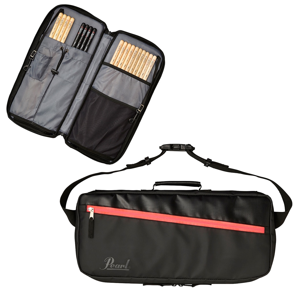 防水性に優れた素材を採用し、ショルダーストラップ、フロアタムに取り付けるフック、小物関係を収納する内面ポケットを装備した本格派ドラマー向けのスティックバッグ。スティックのみで約12ペア収納可能。(ブラックw/ファスナー部ピンク)この商品の取り扱い店舗