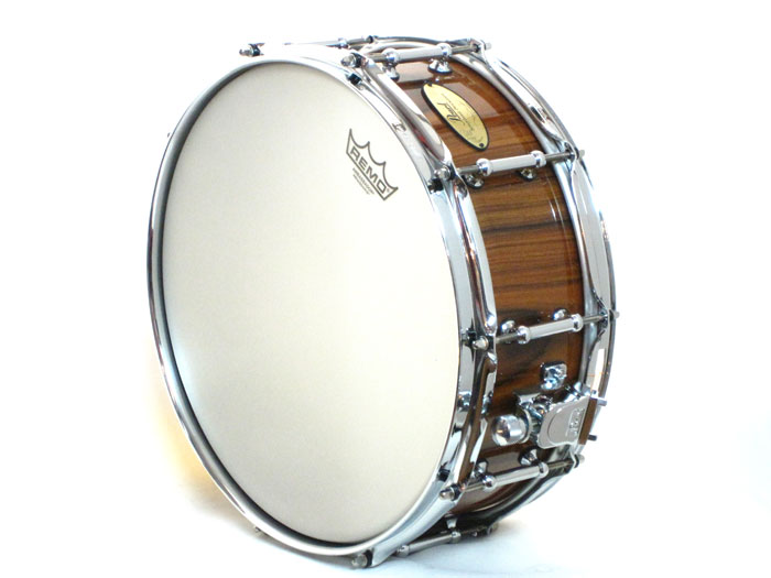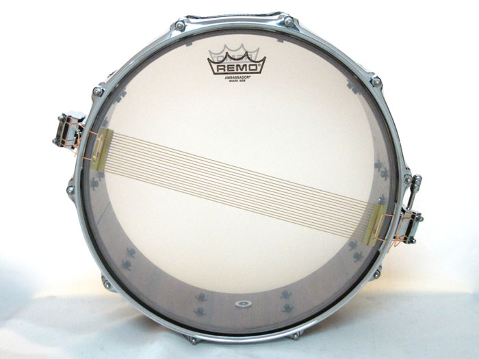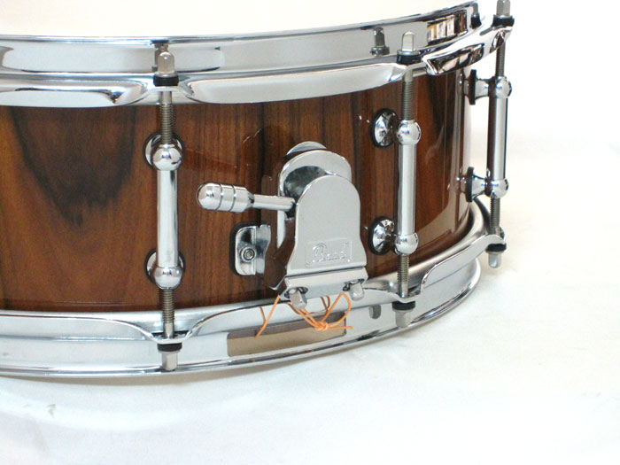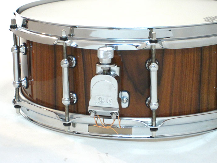 マリンバの音板として使用されてるローズウッドは、ドラムシェルの中では非常に硬質な素材で、それを樽型(ブロック状)ではなく、通常ドラムと同様の高度な成型技術で、極めて真円度の高く4プライシェルに仕上げました。これにより素直な振動伝達となり、レスポンスも素早く、アタックの効いたウォームでリッチサウンドが得られます。さらにシェル内面にはヴァイオリンに使われるニスを施すことで、発音の明瞭さと硬質なトーンを保ちながらしなやかで深みある響きを実現しています。