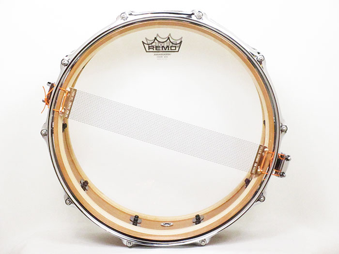 ソリッドシェルは、板を数枚重ねた合板シェルと異なり真円に形成することが難しく、非常に高度な技術が必要となります。またシェル内に余計な接着剤が入らないことから、シェル鳴りを素直に伝えドライでソリッドなサウンドが得られるのが特徴です。