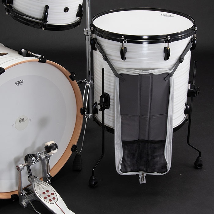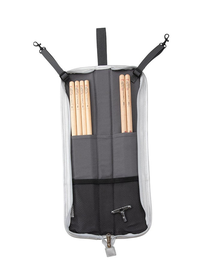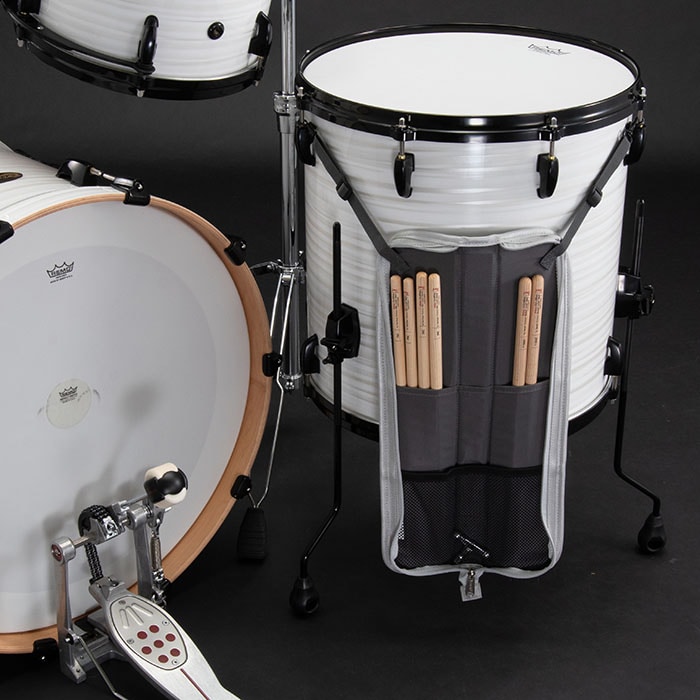 ・スティックを約3ペア収納 チューニングキーのポケットとフロアタムにひっかけるフックが付属