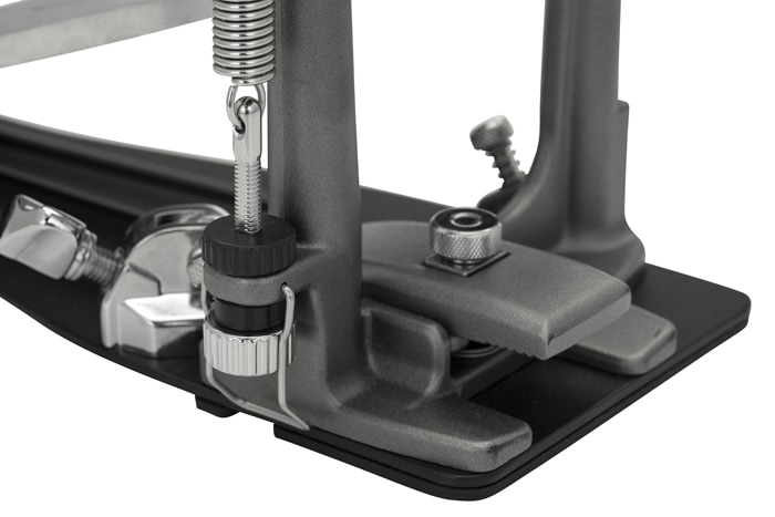 フットボードのヒール部:ボルトを緩め、前後に3段階に移動することにより異なるニュアンスのアクションを可能