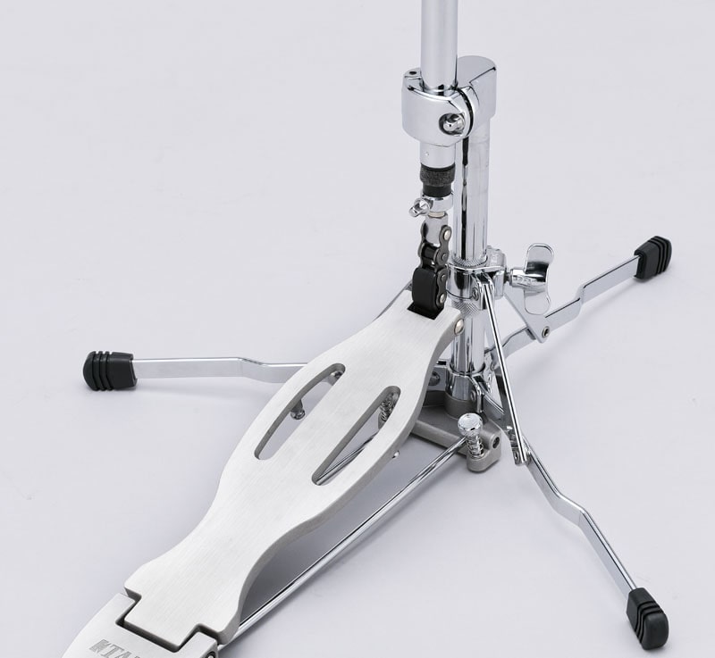 コンパクトなサイズと軽さ、扱いやすいシンプルな構造、そしてヴィンテージ感溢れるルックスを持つフラットベース・タイプのハイハットスタンド。コンパクトながらも安定したセッティングを実現する3脚部や、スプリングテンションとフットボードの角度を独立して調整可能な機構、更には収納時にラジアスロッドをプレート裏に固定することが可能な点など、単なるヴィンテージスタンドのコピーでは無い、TAMAの技術と工夫を盛り込んだ、新しいフラットベース・ハイハットスタンドです。
