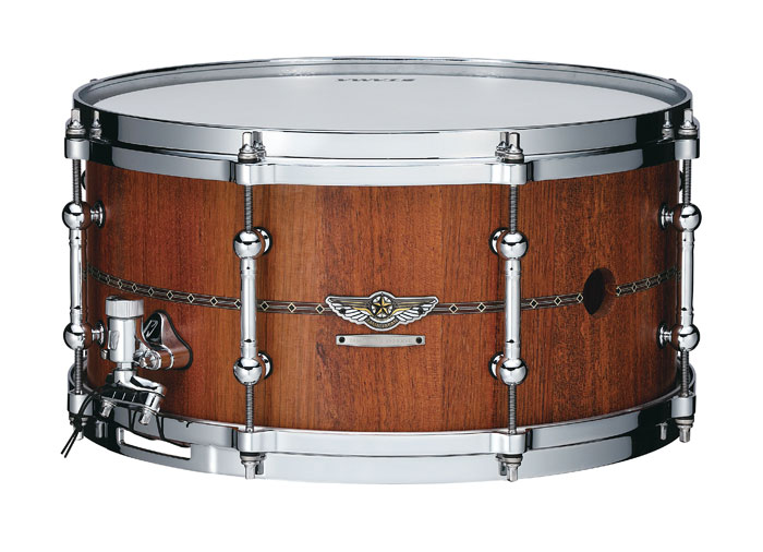 その木目の強い褐色のシェルにインレイが施されたルックスゆえに、際立った存在感を放つSTAR Reserve “Jatoba”。それは正に、表面は荒々しくともその奥底は深くゆったりとたゆたう深海のように、深く、どっしりと響きわたります。バンドの奏でるサウンドをどっしりと支える、深みのあるサウンドを求めるドラマーにお勧めの逸品です。