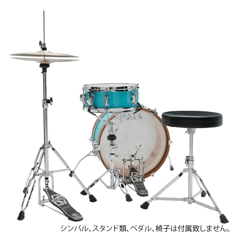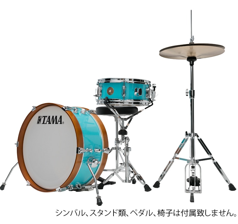 12”口径のスネアと深さ7”と極浅に成型された18”口径のバスドラムの2点構成で、セッティングに必要なスペースも最小限で済むため、カフェのような小さな会場からストリートショ ウまで、幅広い場面でお使い頂けます。
