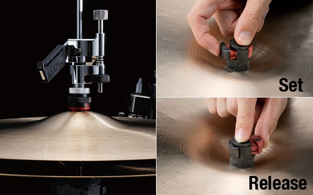レバーをスティックでヒットすることで、ハイハットのトップシンバルを落としてクローズの状態にすることができ、その状態でハイハットスタンドのフットボードを踏み込むと、通常のオープン/クローズの演奏を可能とするアイテムがドロップクラッチです。このモデルでは、従来のドロップクラッチでは不可能だったハイハットシンバルの締め具合を微調整することが可能で、ハーフオープンのサウンドを得ることができる画期的な機構を搭載しています。