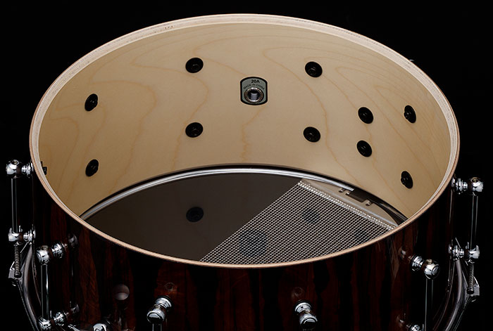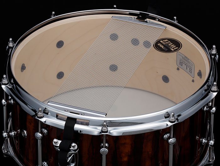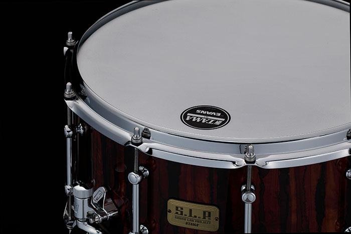 オープンなサウンドを持つメイプル材を、14” x 6.5”と深胴に成型。アコースティックな響きを特長としな がらも、6.5”と深めに設定されたサイズと、ボリューム感のある42本線のスナッピーをマッチングさせた ことで、芯の太いパンチのあるサウンドとファットな鳴りを実現しました。また、フープには内曲げの 2.3mm Sound Arc Hoopを採用し、程よく倍音を抑え、タイトな音像を創出しています。
