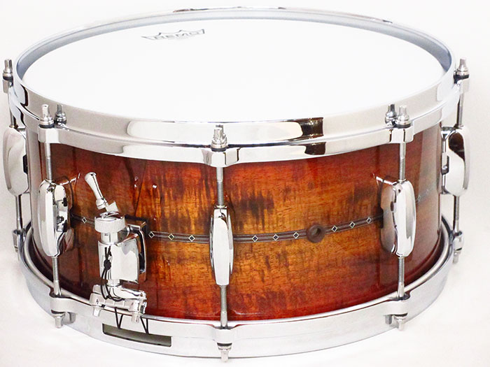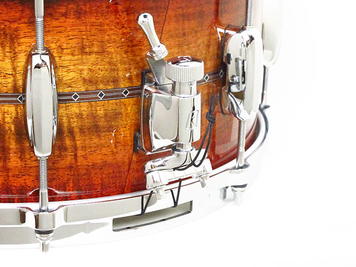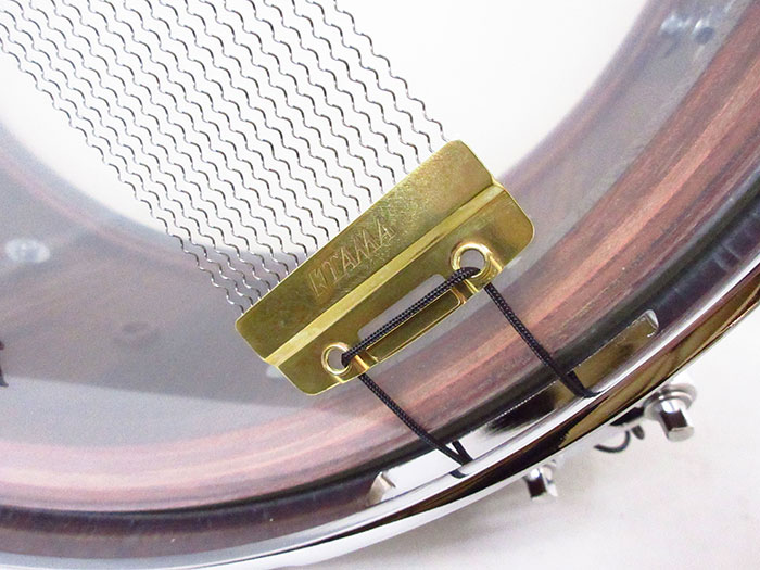 新しくデザインされたラグは、小ぶりなデザインを採用しシェルとの接触面を可能な限りまで小さくしたブリッジタイプです。小さめのラグにすることで、スネアドラム本体の重量を軽くするとともに、パーツ点数を少なくすることでシェル本来のもつポテンシャルをよりオープンに、かつレゾナンス豊かにします。