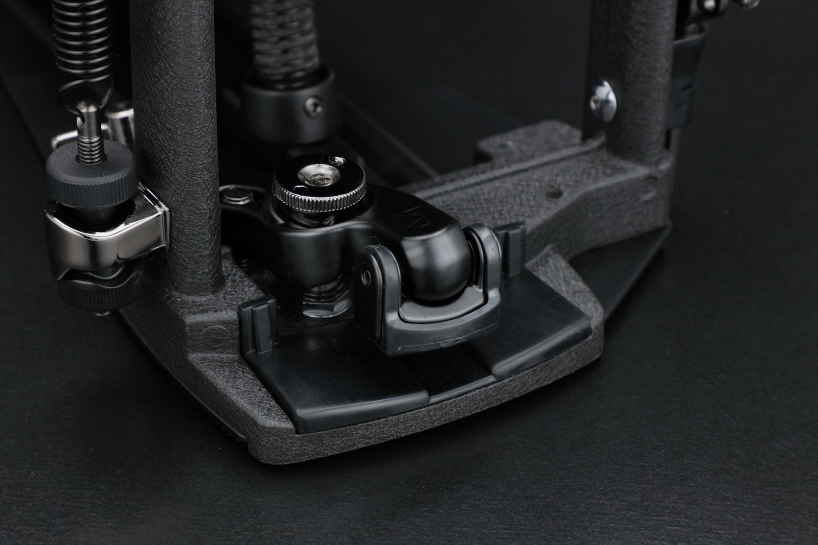 フットボードを踏み込んだ後の”返り”をアシストすることで、軽やかな踏み心地を実現するTAMAオリジナル機構、Cobra Coil (コブラコイル)。フットボードとアンダープレートの間にセットされたこの機構は、ビーターがバスドラムヘッドをヒットする直前からフットボード裏側に触れる構造となっています。これにより踏み込みに影響を及ぼすことなく”返り”をサポートし、軽やかなフットワークが可能となります。