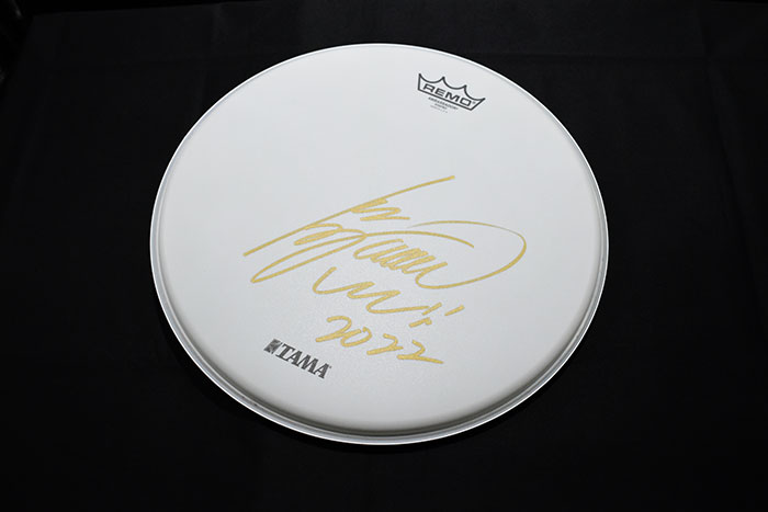 また、スネア本体に装備されているヘッドとは別に、長谷川浩二 の直筆サイン入り打面ヘッドがもう1枚付属します。