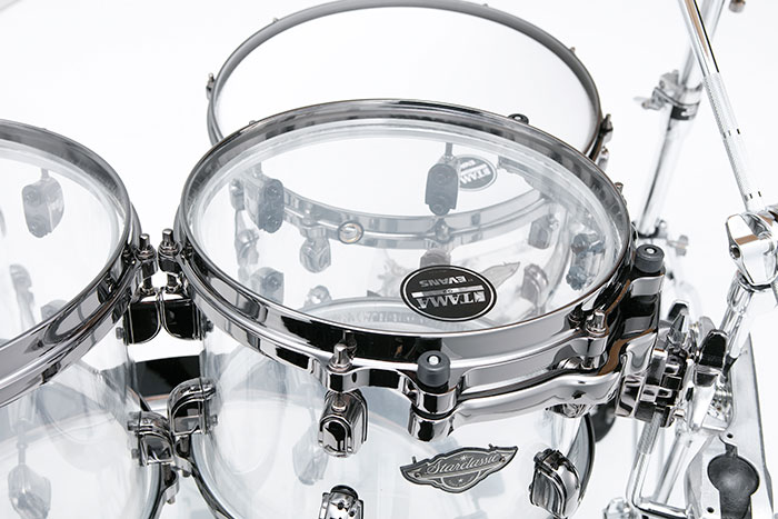 アクリルシェルのドラムキットは1970年代以降、そのユニークな見た目とウッドシェルとは異なる独特の音色が多くのドラマーの心を捉えて きました。TAMAもまた1974年にRoyalstarの1モデルとして発売したことを皮切りに、Starclassic Mirage(2007年)、Silverstar Mirage(2014年)として限定モデルを発売してきました。