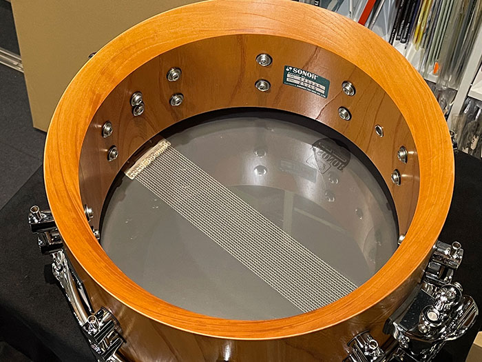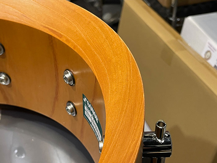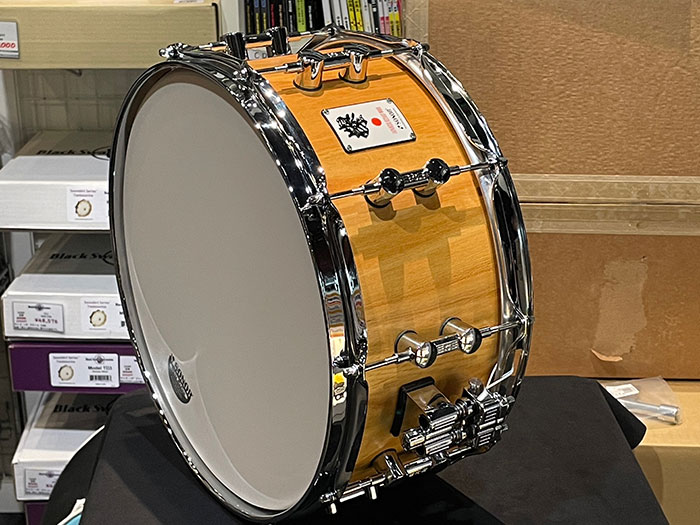 和太鼓の伝統的な刳り貫き工法と日本原産の最高の木材、そしてソナー社の技術力を掛け合わせ、特別なスネアドラムを作る。というコンセプトのもと、様々な樹種より試作を繰り返し終に辿り着いたのがこの「欅-KEYAKI WOOD-」スネアドラムでございます。