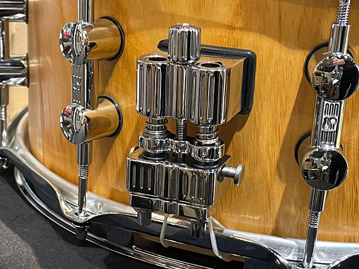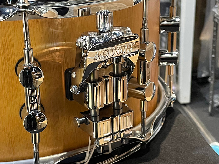 基本的なスペックは従来の5インチと同様ですが、この6.5インチスネアは厚みが増し、全体が太くなり力強いサウンドが得られます。 これらを組み合わせた圧倒的な音質を誇ります。 素材の良さをそのまま表現するプレスフープを採用しており、叩くほどに深みが分かる最高の楽器です。