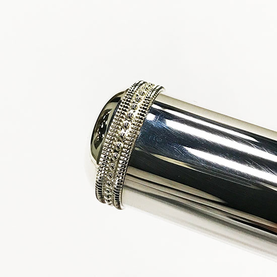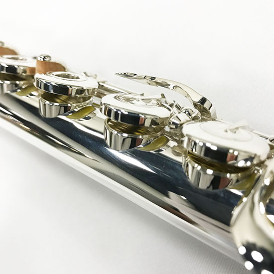最終工程で管体、キイは全て手作業で磨かれ、銀本来の響きが味わえる、音色、吹きやすさ、精度は文句なしの楽器となっています。