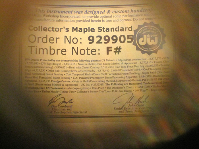 スタンダードシェルは明るくパンチの効いたアタックと、豊かなサスティンがバランスよくミックスされたDW伝統的シェルです。スタンダードでキットを組んだ時には、全体のバランスを揃えるために14インチ以上のサイズにビルドインボトムシェルが採用されています。スタンダードシェルのキャラクターのまま、サイズに合わせて自然な低音が出るようになります。