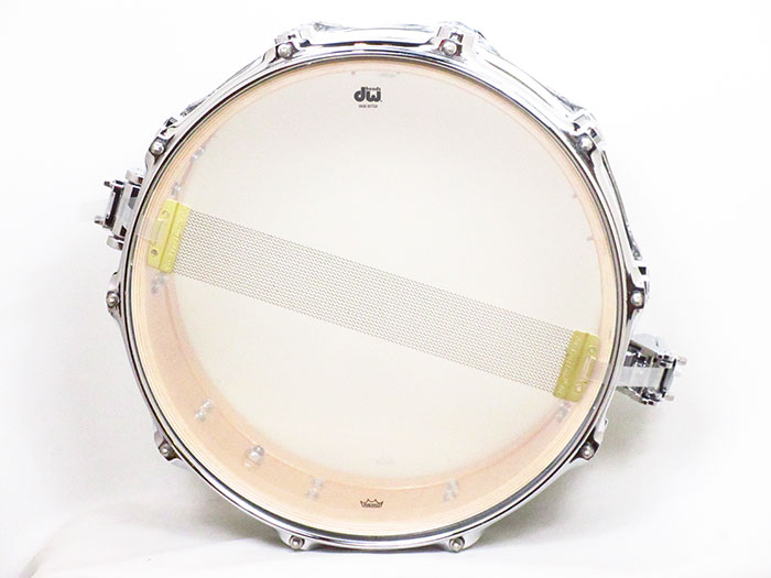 VLT(バーチカルローティンバー)」と呼ばれるシェルの組み立て方を施しています。VLTはシェルプライを縦方向の木目を多く組んだカスタム仕様で、通常のシェルよりもピッチが低くなり、スネア特有のハイチューニング時でも低域は損なわず、重心のあるサスティーンとアタックの効いたサウンドが得られます。