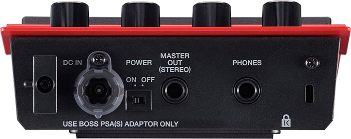 操作は至ってシンプル、トップ・パネル上の 4 つのつまみだけで音色選択やエフェクトのコントロールが可能です。