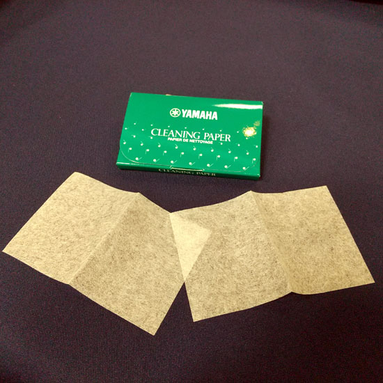 ヤマハのクリーニングペーパーは吸水性が高く、濡れても破れにくい紙質なので木管楽器のお手入れの必需品です。