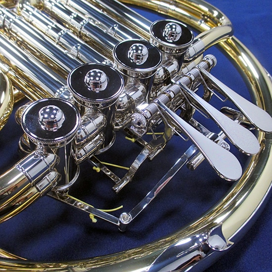 クリアで明瞭な音。低音域から高音域までスムーズに移行できる吹奏感。可動式第4レバー、B♭管第2抜差管にロング引手環を採用、さらにバルブケーシングやレバー機構を徹底的に見つめ直すことで高い耐久性を備えています。