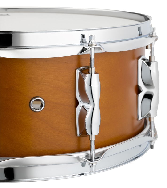 レコーディングカスタムスネアドラムにウッドシェルがラインナップ、 ドラムセット本体と同じバーチシェルに同シリーズメタルスネアドラムに搭載しているワンピースラグを採用した14"x8"のスネアドラムです。バーチシェル特有の中低音域、パワフルな音量に切れ味のよいサスティンが加わり、幅広い音楽ジャンルに最適なサウンドメイキングを可能とするバランスの良いモデルです。