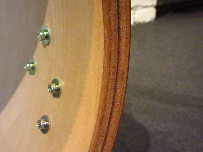 シェル材の中で最も硬いジャトバをコア材として重硬材のカポールで挟み込み、外層にはメイプルを使用しています。