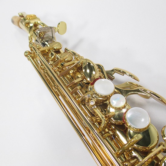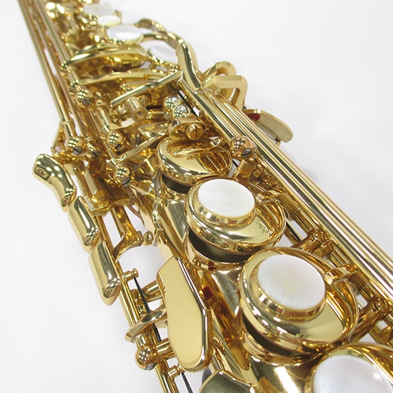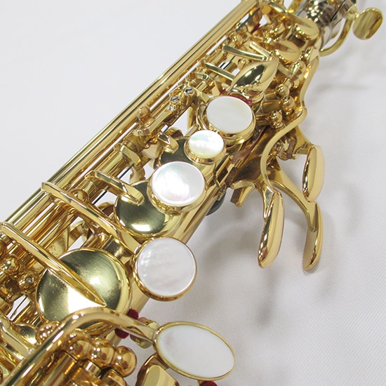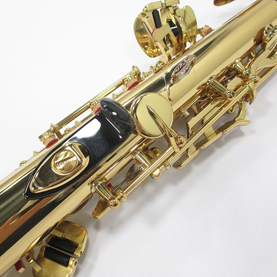 Bb/High F#、フロントFキイ付き/ゴールドラッカー仕上げ/デタッチャブルネック(ストレート、カーブド)/ステンレス製スプリング/可動式指掛け/ポリエステル製指貝/カスタムマウスピース4C