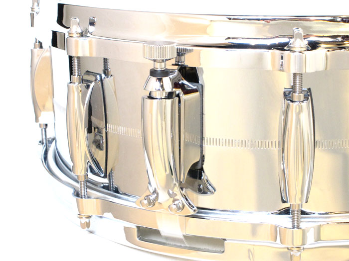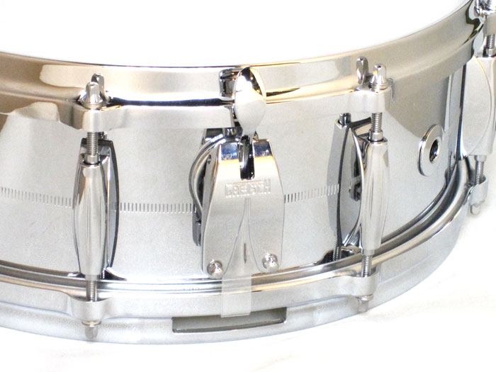 各社のブラスシェルとは一味違う4160は、魅力あるアコースティック感の強いグレッチサウンドの持ち主であります。独自のサウンドキャラクターを持ち合わせるグレッチスネアドラムは様々なミュージックシーンに溶け込み、多彩な魅力を発揮してくれます。グレッチ特有の力強いアタックと粒立ちの良さに、グレッチ特有のマイルドでアコースティックな鳴りとパワーが融合したスネアドラムです。ピッチを上げても深みがありタイトなサウンドを得られます。ビンテージの4160に装着されているチューニングキーを内蔵できるキーホルダー(G-5447)も復刻されております。幅広いジャンルに対応するオールラウンドスネアドラムでございます。