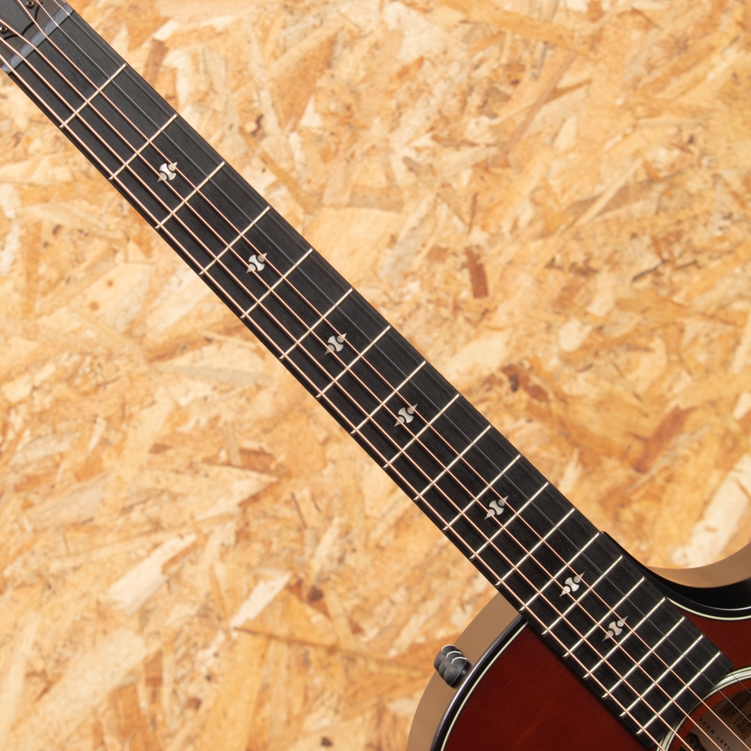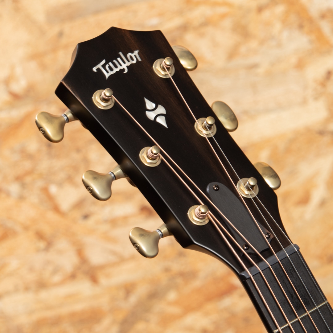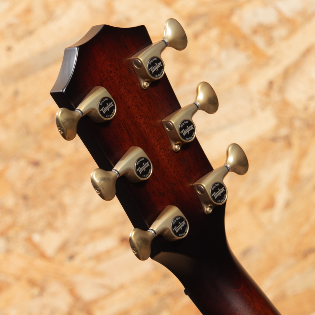 2000年代より急速に成長し画期的なギター構造を採用した事によって世界のトップアコースティックブランドに成長したテイラー社。国内をはじめ特に米国ではプロミュージシャン使用のシェアが高く、圧倒的な人気を誇っています。本器はテイラー・ギターズ創設50周年を記念したモデル”50th Anniversary Builder's Edition 314ce LTD”。スプルーストップ、アーバンアッシュサイド&バック、マホガニーネック、エボニー指板&ブリッジ、グランドオーディトリアムサイズボディー。トップ構造はV-Classブレーシングで力強さと強度、伸びやかなサスティーンをもたらしています。ES2 P.Uシステム搭載しアンプ接続時もナチュラルアコースティックサウンドを提供します。面取りされたボディーエッジに加え滑らかに加工されたベベルドアームレストとカッタウエイ部にもベベル加工が入りハイポジションへのアクセスも実にストレスなく演奏できます。ヘッドにはマザーオブパールのヘッドロゴ、Gotoh 510アンティークゴールドチューナー、ゴールドのアクリルドット入りブリッジピン、ボディー内部には50周年記念ラベルなど50周年を飾るにふさわしいゴージャスなルックスとなっています。サイド&バックに使用されているアーバンアッシュ材はTaylor社マスタービルダーのアンディ・パワーズ氏が高品質なホンジュラスマホガニーに匹敵する特性を有する次世代のトーンウッド材として新たに取り入れた材。温かみのあるウッディな声質ながら芯のあるクリアなサウンドはトーンに明瞭さを求めるフィンガーピッカーからシンガーソングライター、グループの中で音を際立たせたいプレイヤーにも適した多用途な1本に仕上がっています。オリジナルハードケース付属。