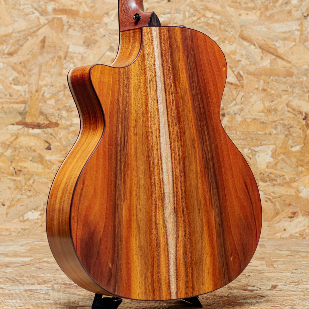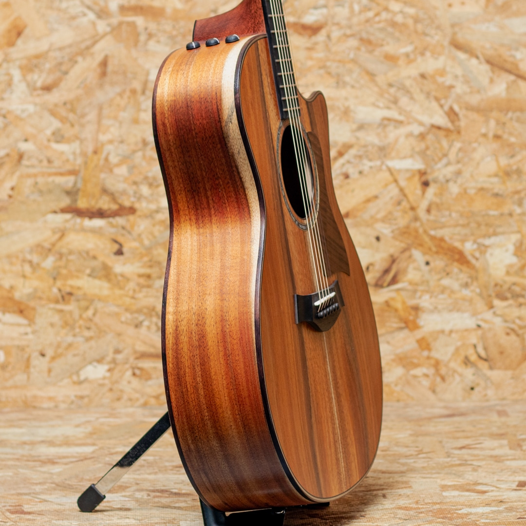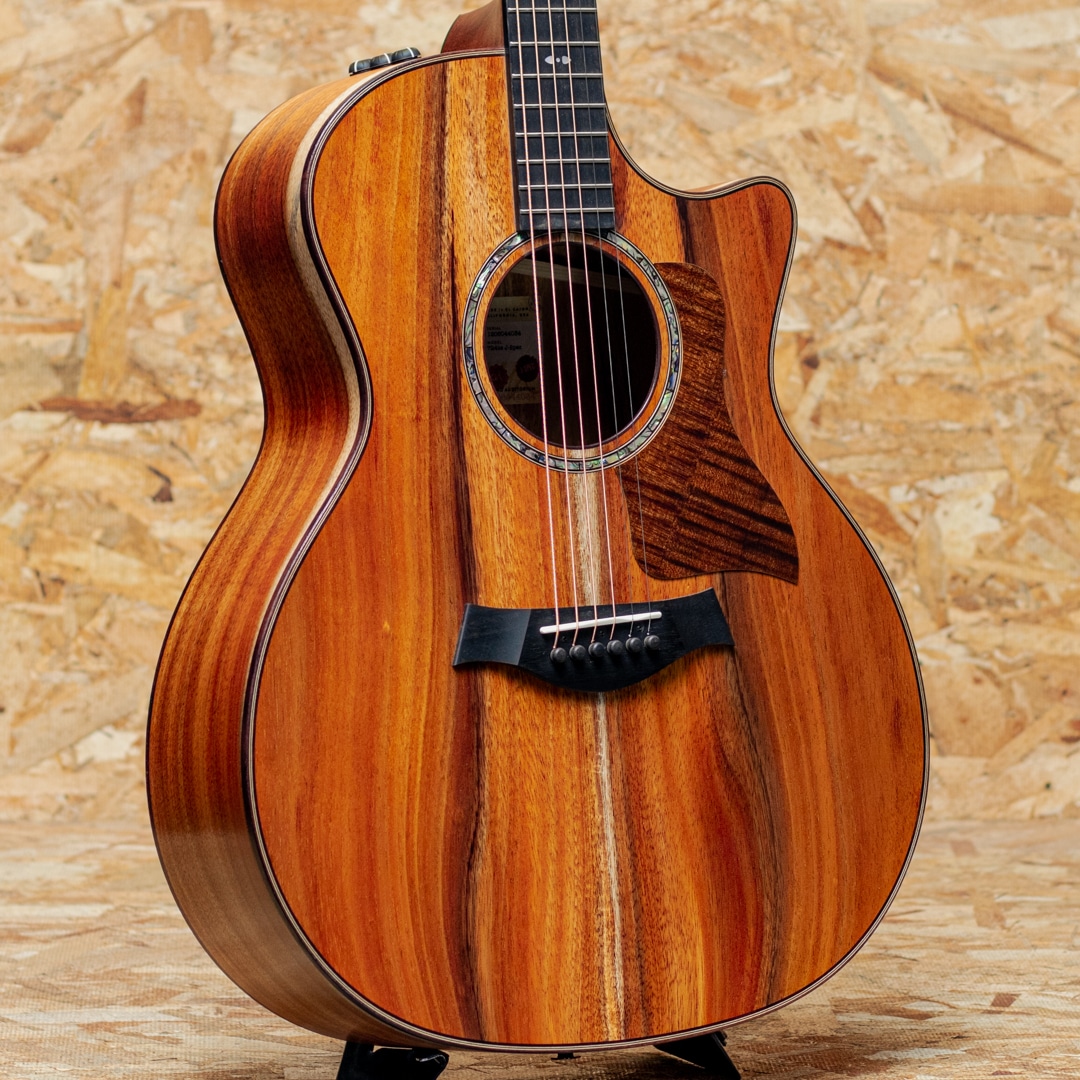 1974年にボブ・テイラーとカート・リスタグの2人によって創立されたテイラー・ギター。革新的なアイデアと高い技術力、ハイセンスなマーケティングで2000年代より急速に成長し、今や世界のトップアコースティックブランドに成長したテイラー社。国内をはじめ特にアメリカではプロミュージシャン使用のシェア率が大変高く、圧倒的な人気を誇っています。本器は手の小さい方やエレキギターからの持ち替えの方にも扱いやすい、ナット幅42.86mm、90年代のテイラーのネックを彷彿させる細いネックを採用した日本限定仕様モデル”J-Spec”シリーズ。こちらは厳選されたハワイアン・コアを使用した”724ce”のJ-Specモデル。セレクトグレードハワイアンコアトップ、ハワイアンコアサイド&バック、マホガニーネック、エボニー指板&ブリッジ、MOPパール指板インレイ、パウア&ローズウッドロゼッタ、ダークステイン加工されたシカモア製ピックガード、ローズウッドバインディング、V-Classブレーシング、ES2ピックアップシステム搭載、極薄マット仕上げ。コアらしくブライトさとすっきりと聞こえのよいミッドローとバランスをもった響きが爽快です。極薄のマット仕上げもあり膜のとれた様なアタリのよい反応を示しオールラウンドに使用できるギターです。テイラーオリジナルのES2ピックアップシステムにより、ライン出力時にもリアルなアコースティックサウンドを奏でます。細めのナット幅とスリムなネックで非常に扱いやすく、レギュラーモデルが少し広く感じていた方にも大変おすすめです。この仕様、待っていた方も多いのではないでしょうか。ぜひ弾き心地お確かめください。ケースはTaylorオリジナルの頑丈で持ち運びに便利なAerocase付属が付属します。