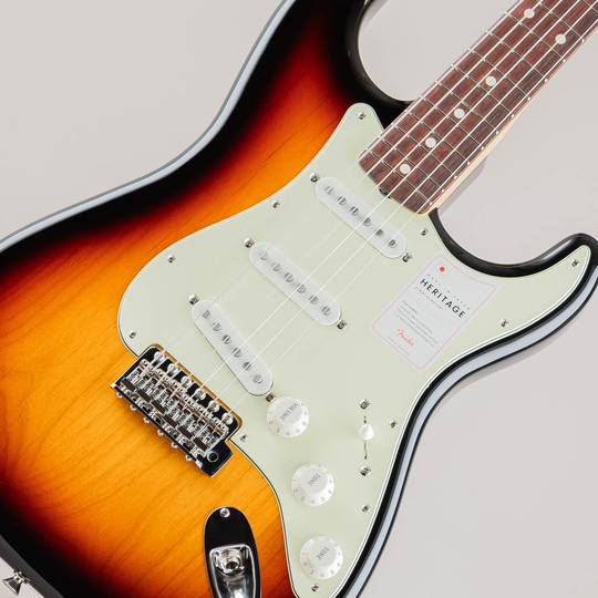 Made in Japan Heritage 60s Stratocasterはアルダーボディにラッカーフィニッシュを施し、使用年月と共に色合いに深みが増します。21本のヴィンテージスタイルフレットを装備した7.25インチラジアスのThick “C”シェイプメイプルネック、6サドル式ヴィンテージスタイルSynchronized Tremoloブリッジ、そしてHeritageシリーズのために特別に選定されたピックアップなど、本製品を構成するすべての仕様はクラシックなプレイアビリティと甘いヴィンテージトーンを実現するためにこだわり抜かれています。