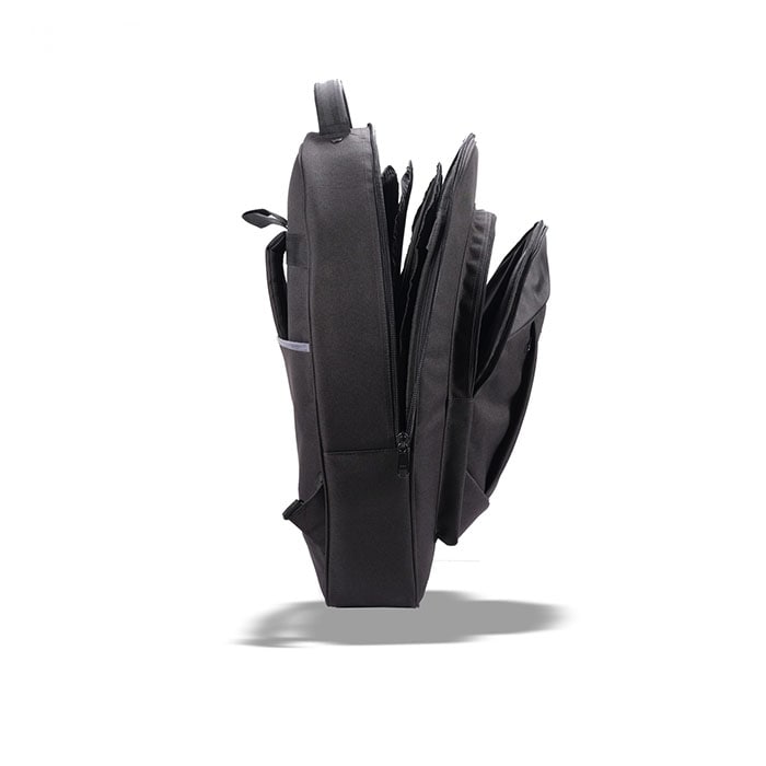 バックパックストラップには肩ズレを防ぐチェストベルトなどを標準装備。 バックパックストラップを使用しない時はクリップを外して背面のポケットに収納可能です。