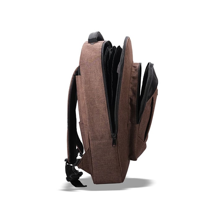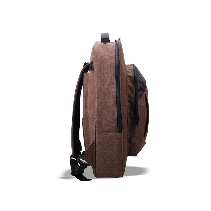 バックパックストラップには肩ズレを防ぐチェストベルトなどを標準装備。 バックパックストラップを使用しない時はクリップを外して背面のポケットに収納可能です。