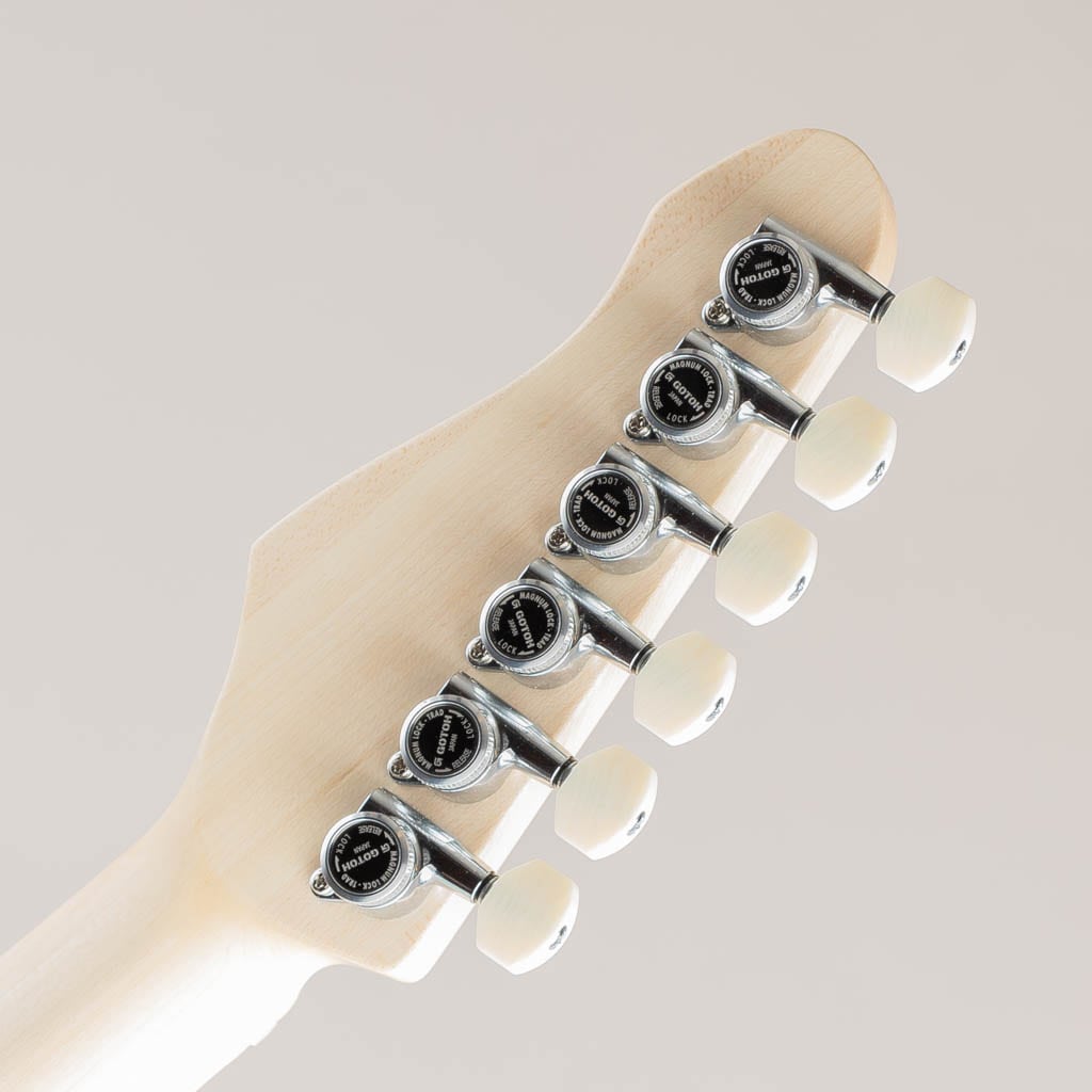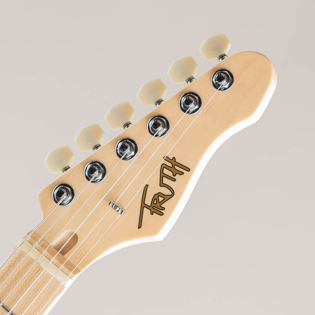 電子部分のみならず、ボディとメイプルネックは鳴り活かしたニトロセルロースラッカーを採用。特にネックは耐久性を高める為クォータソンメイプルに加え、指板サイドにはスキャロップ加工も施されており演奏面にも最大限の配慮が成されております。ブリッジはトラディショナルな外観とは裏腹に、側面の壁をカットしたTruthオリジナルブリッジを搭載。更に各弦の裏通しとトップロードを選択可能となっております。その他にも設置面積を広くとった3点止めジョイントやロッキングチューナー、摩耗にも考慮されたステンレスフレット等、細部に豊富な経験と技術が凝縮された至高のハンドメイドギターでございます。