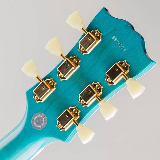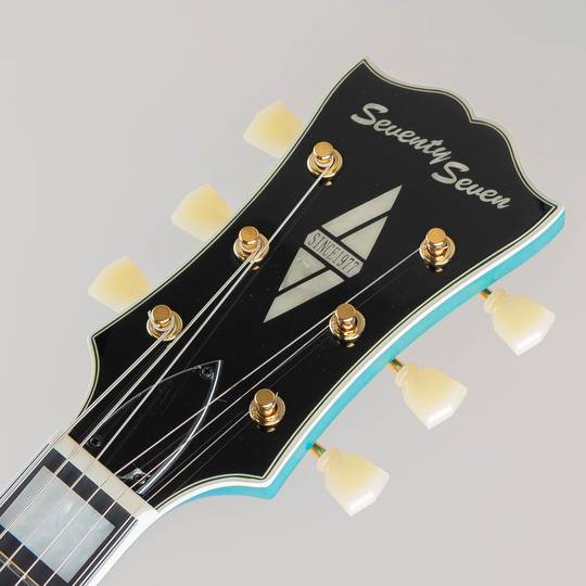 “77”を図案化したオリジナルのヘッドインレイが輝くヘッド。バインディングと組み合わせてスタンダードモデルには無い豪奢な雰囲気が漂います。