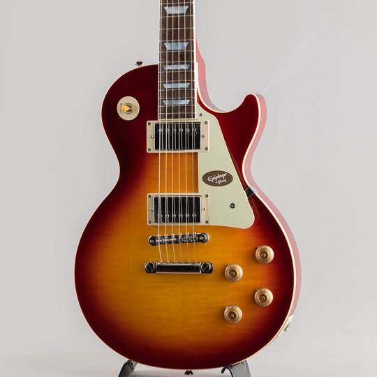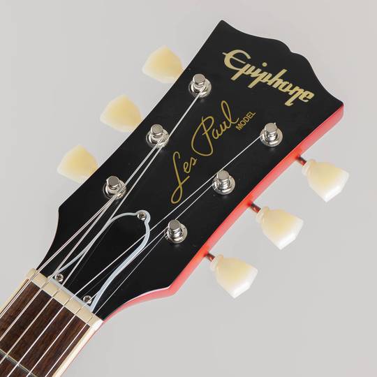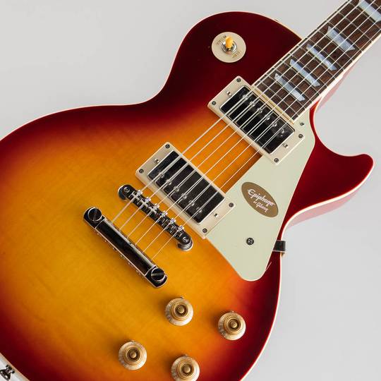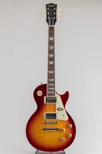 ギブソン カスタムショップとの緊密な連携により、エピフォン? 1959 Les Paul Standard は希少な1959 年製モデルの忠実な再現に成功しました。マホガニー・ボディにフィギュアドメイプル・トップ(AAA グレードのフレイム・メイプル化粧板)の材構成を持ち、ロング・ネック・テノン仕様でジョイントされた'59 ラウンデッド・ミディアムC プロファイル・ワンピースマホガニー・ネック、ギブソンスタイルの オープンブック“ ”R9 ヘッドストックシェイプを採用しています。さらに、VOS(ヴィンテージ・オリジナル・シーン)フィニッシュ、Gibson Custombucker ハムバッキング・ピックアップ、Switchcraftセレクタースイッチと1/4”出力ジャック、CTSポット、50 年代風のワイヤリング、Malloryコンデンサー、オリジナル同様にベベル加工が施されていないピックガード、エピフォン・デラックスヴィンテージ・チューナー(キーストンボタン付き)等、充実した仕様を誇ります。外張りがブラウン色で内張りがピンク色のヴィンテージスタイルのハードケースが付属となります。